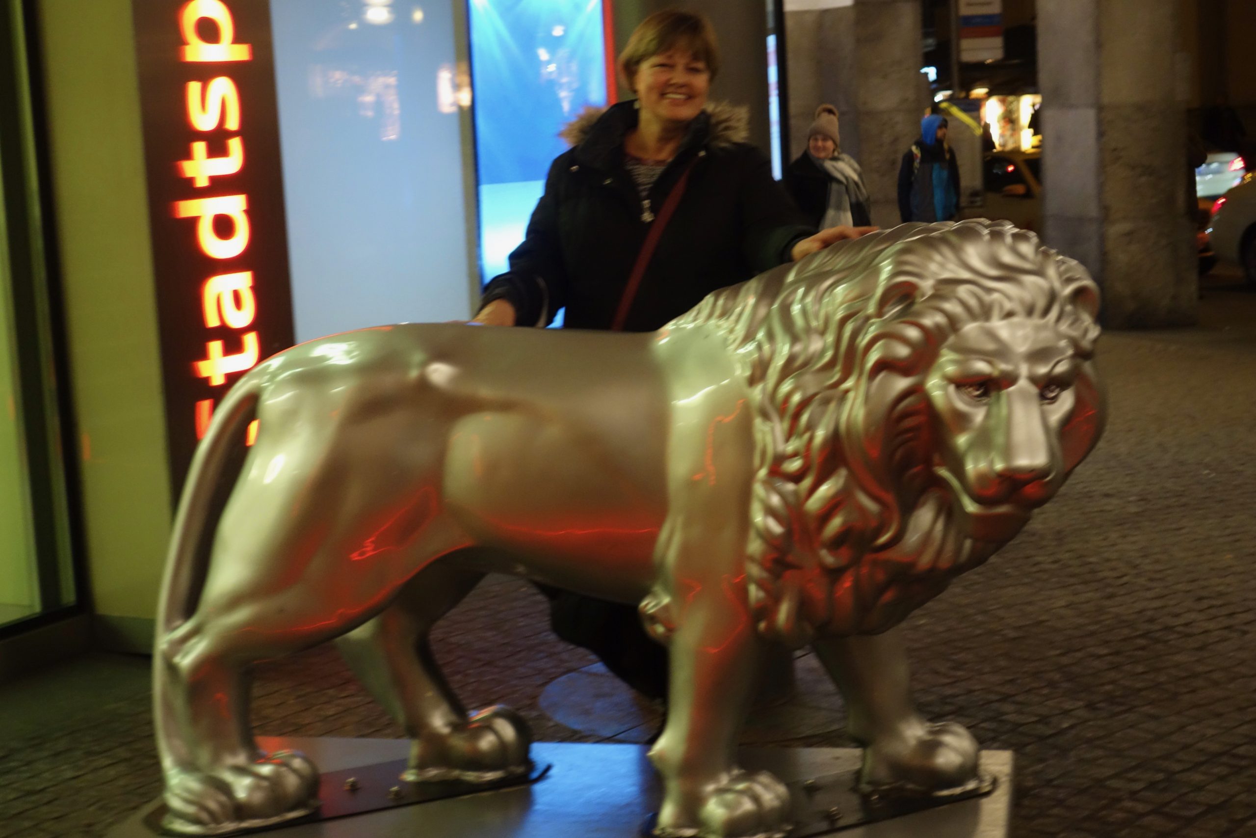 But first – Jan and I were sure to rub the lion’s nose on the statue that would bring us good luck. You could tell by looking, many people do so. We stood there watching tourists take photos when the touched it, as opposed to locals that would nonchalantly reach up for a touch. We were entertained for quite some time.