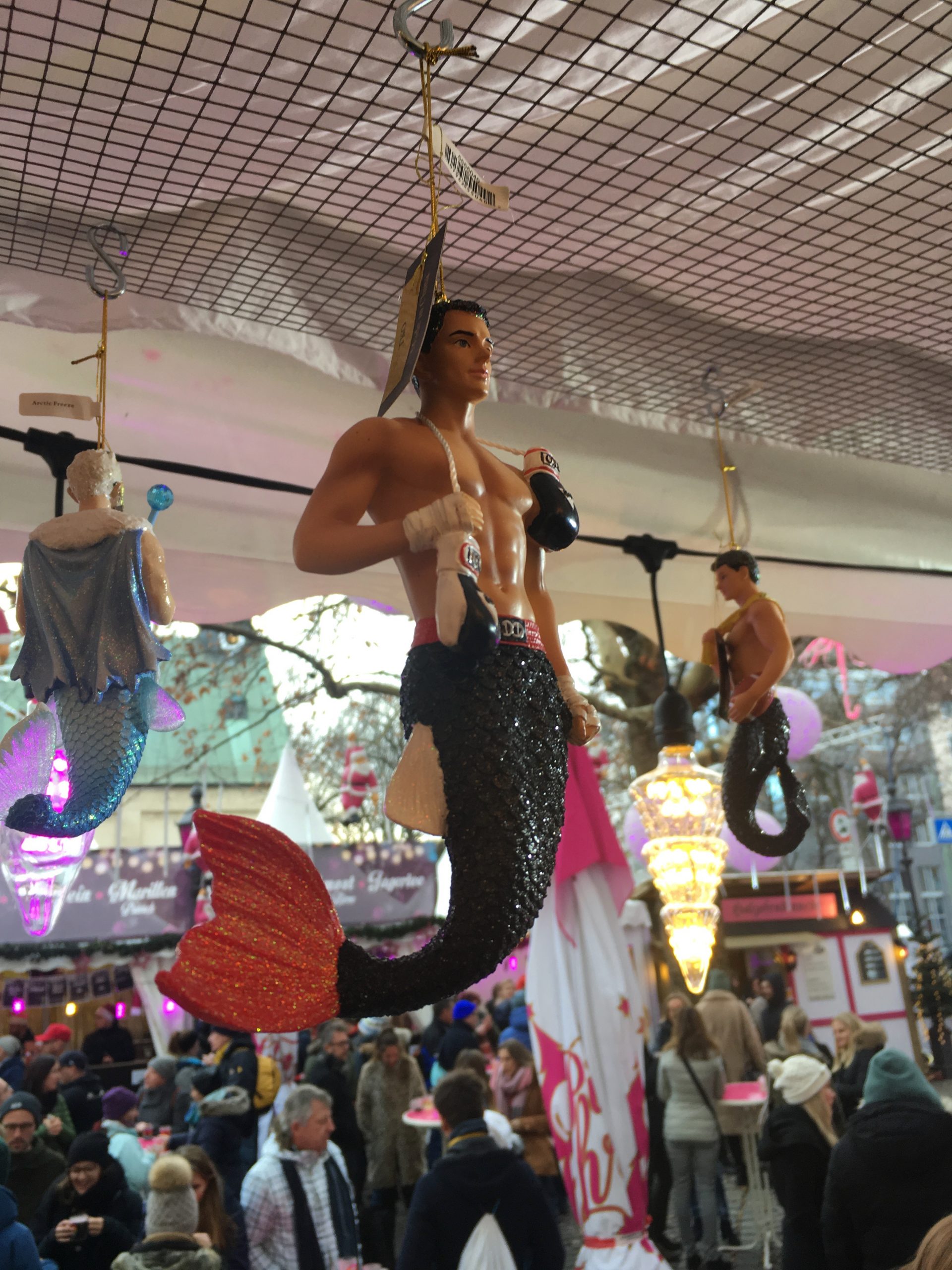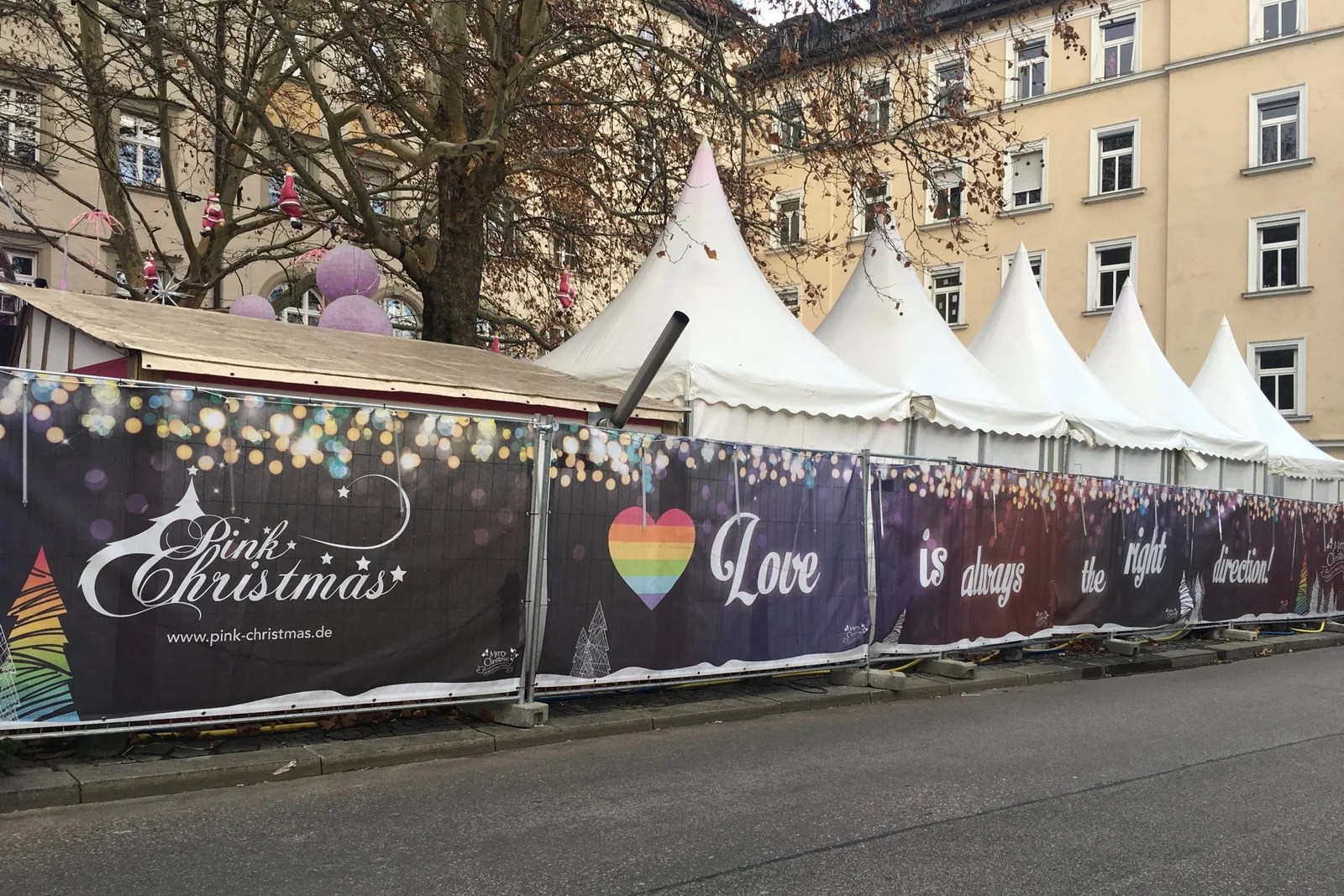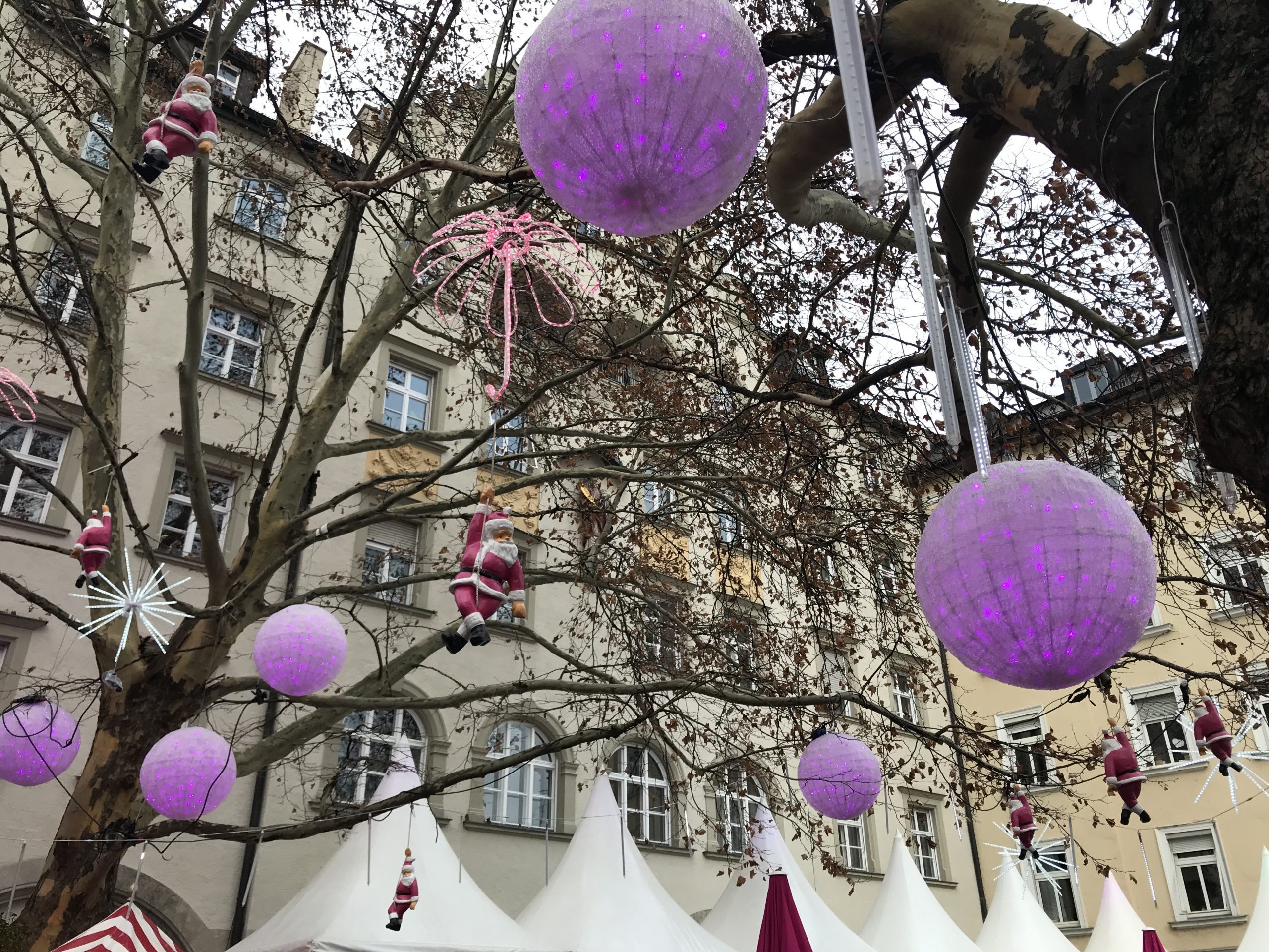 The Pink Christmas Market awaits. It is located in Munich’s Glockenbachviertal at the tiny Stephansplatz. It was a bit of a journey so Jan got us an Uber. The girl that took us had to go all the way around due to construction, but got us very near.