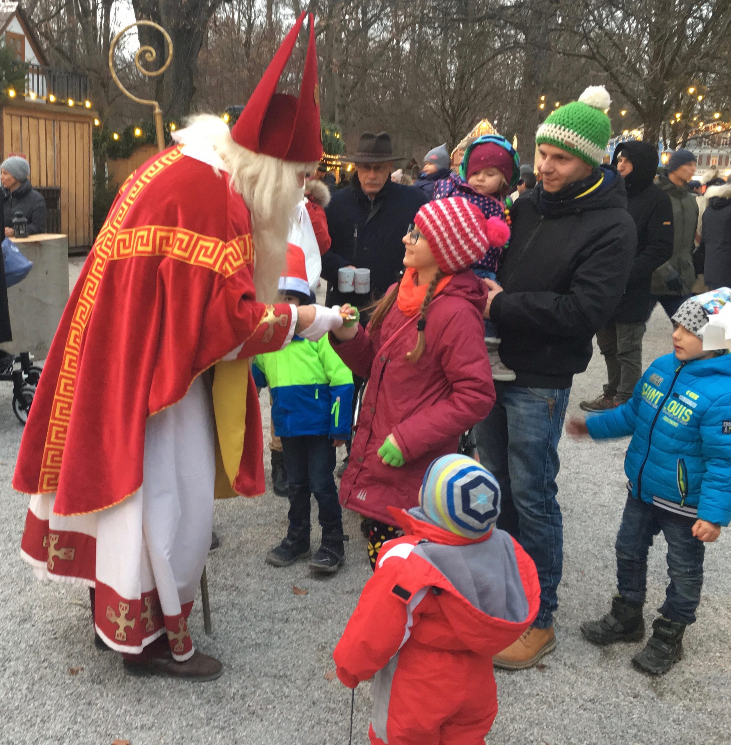 Our path took us right back through the market at the Chineser Turm. Since we had a little time, we hung out before returning to the hotel. The children were so exited by the horses and St Nicholas. Yes, so were we. And Jan fell in love with a little boy on skis. I think his name was Hummel.
