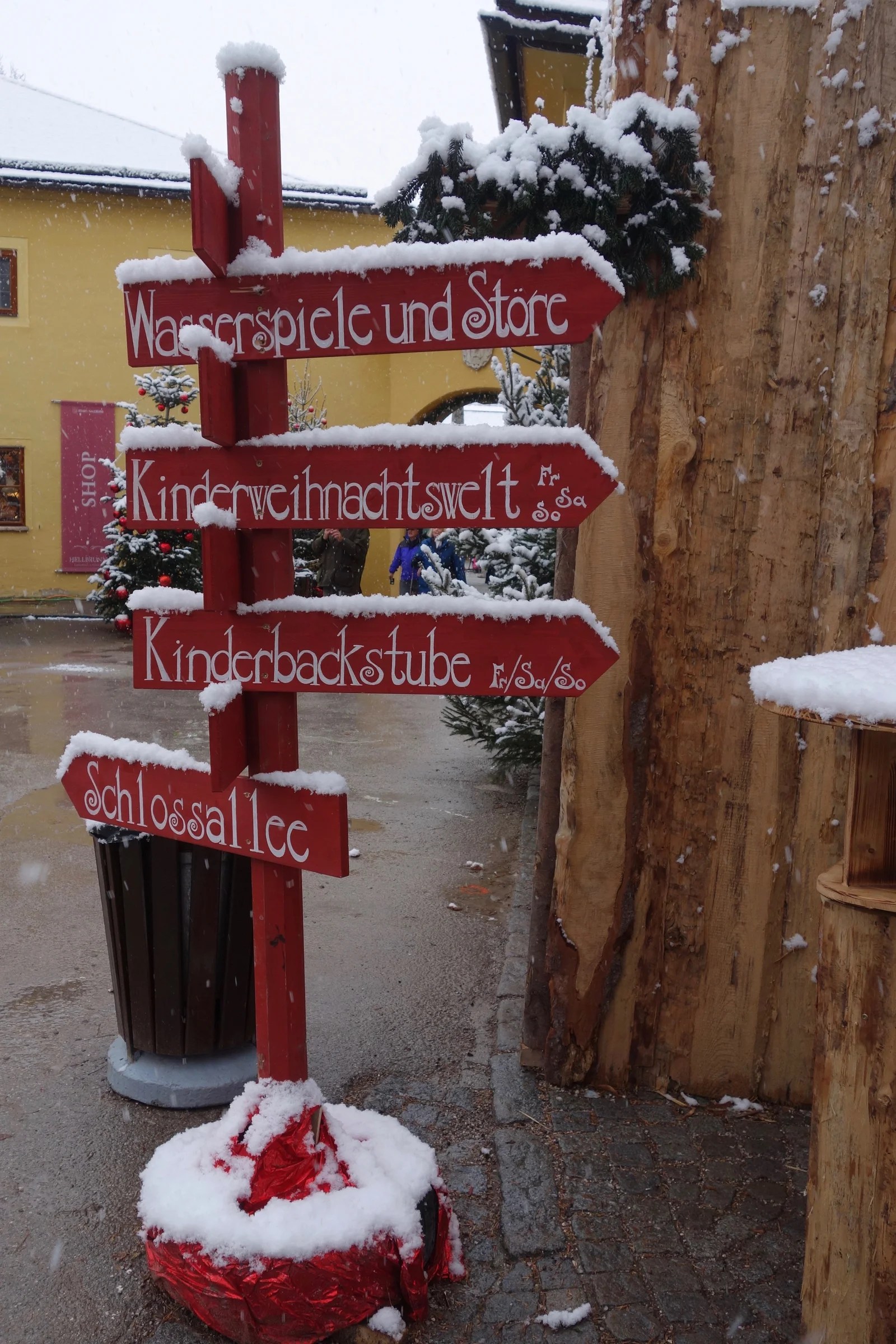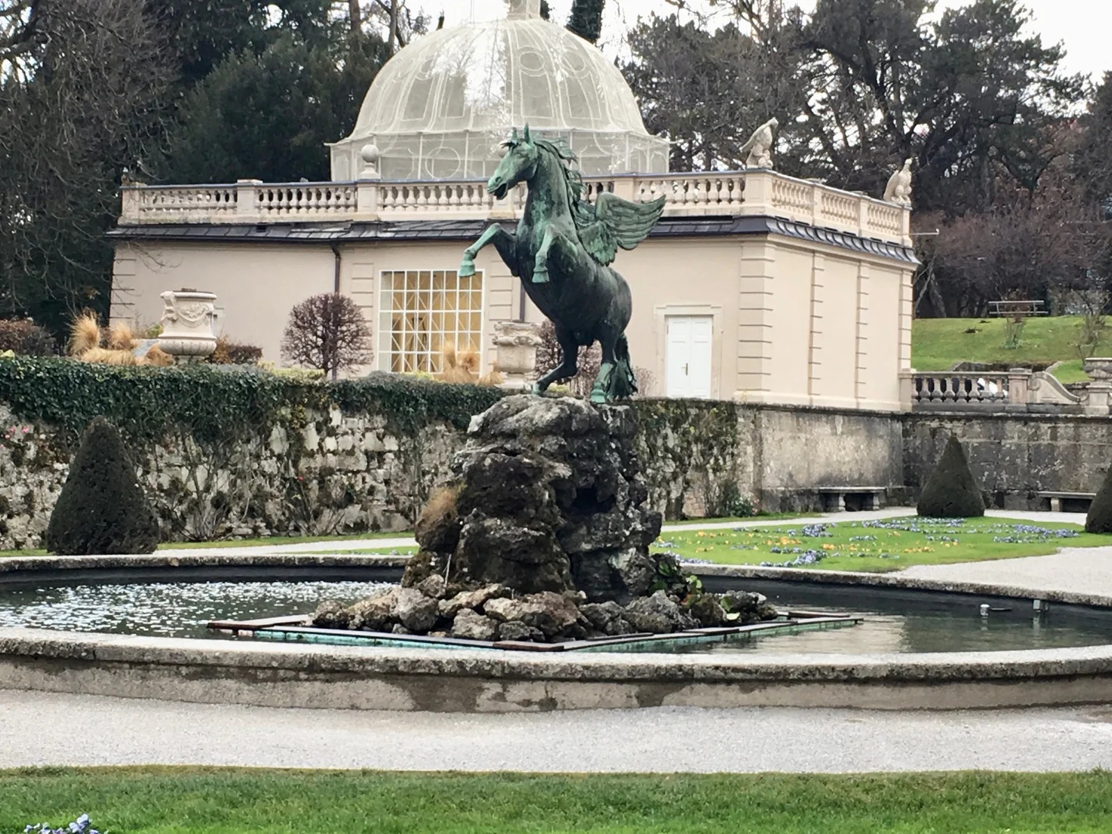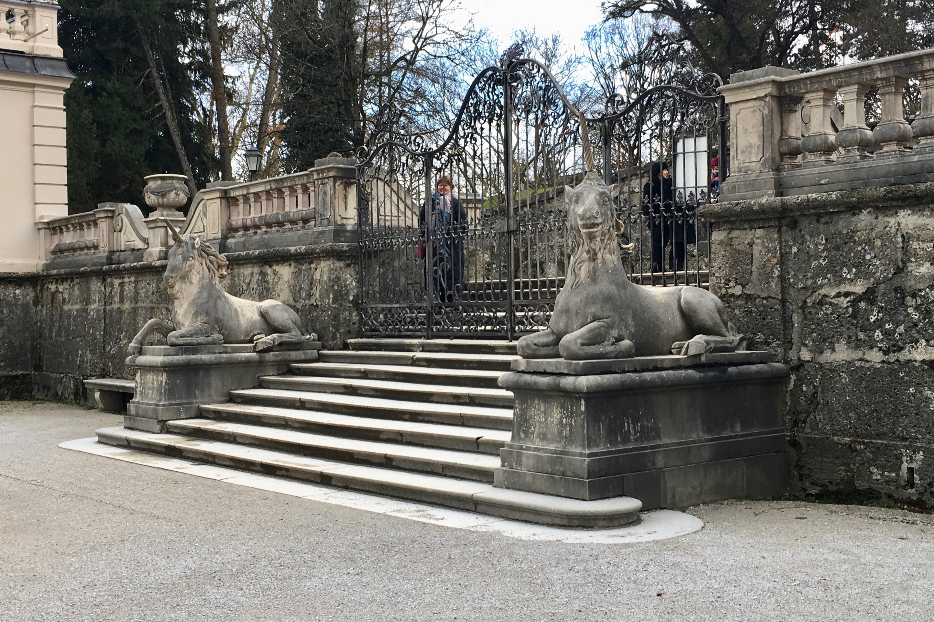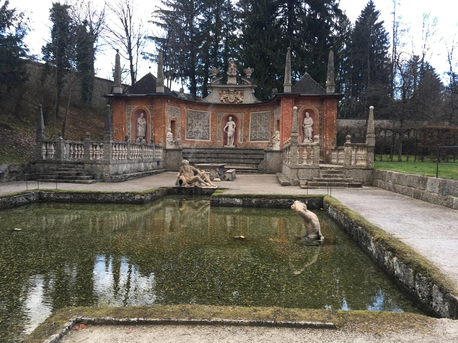 The hotel was sooo relaxing, but we had come too far to lounge around for too long. We bought a bus pass and took a ride out to Hellbrunnen Schloss. Jan had been here in the summer when the fountains could trick the passers by. I’m glad she could provide a narrative of what it was like, since it is very cold and crisp this visit.