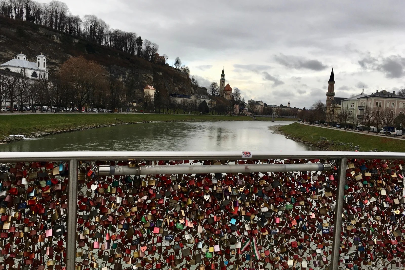 We were taken to see the house where Mozart was born at the Mozart Museum. Then we crossed the river over a bridge filled with love locks to see where he lived later on. Not far beyond the second Mozart House was Mirabel Gardens. You know the one – with the steps – from the Sound of Music. Hmmm. Helga left us at this point to explore a bit more on our own.