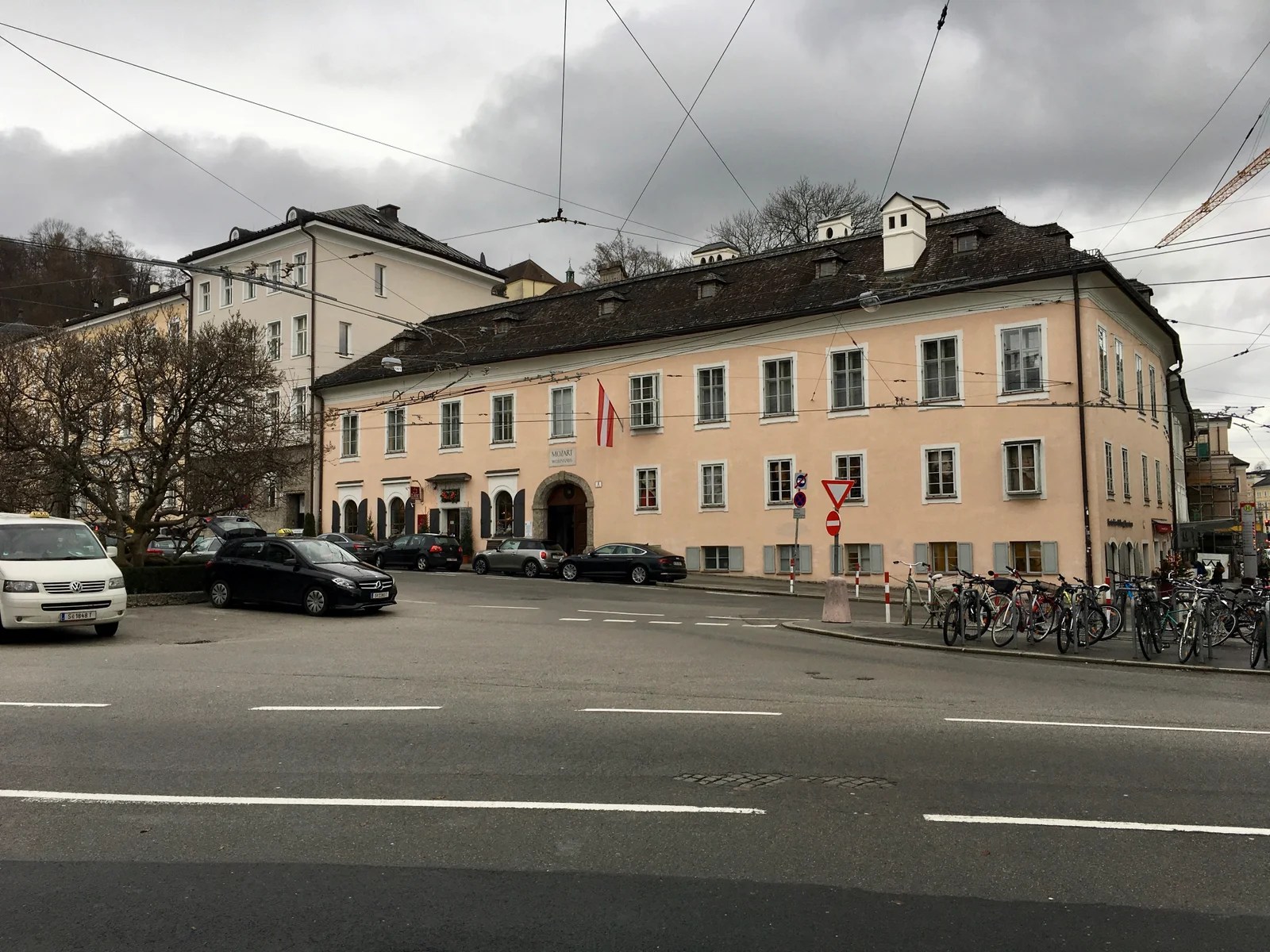Afternoon found us back on the motor coach for our transfer to Salzburg. The trip was snowy in portions. Finally, we arrived at the Radisson Blu Altstadt, a beautiful hotel right in the Baroque historical center of the city. Room 208 would be our home away from home for a couple nights. We had a metal key on a weighty metal key ring as opposed to a card. It had to be left at the front desk when leaving the hotel.
