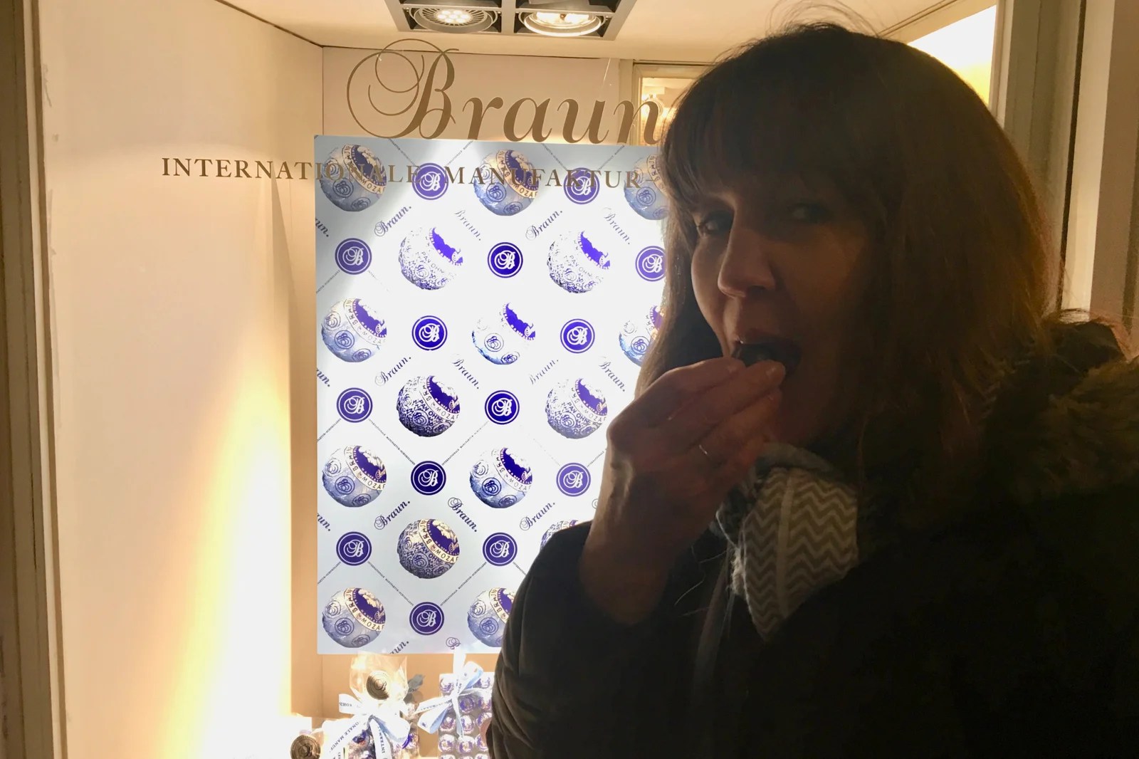 After riding the bus back to near the hotel, we decided to try two of the famous Mozart Balls. We tried Braun and Furst. Jan and I agreed – Braun won our taste test.