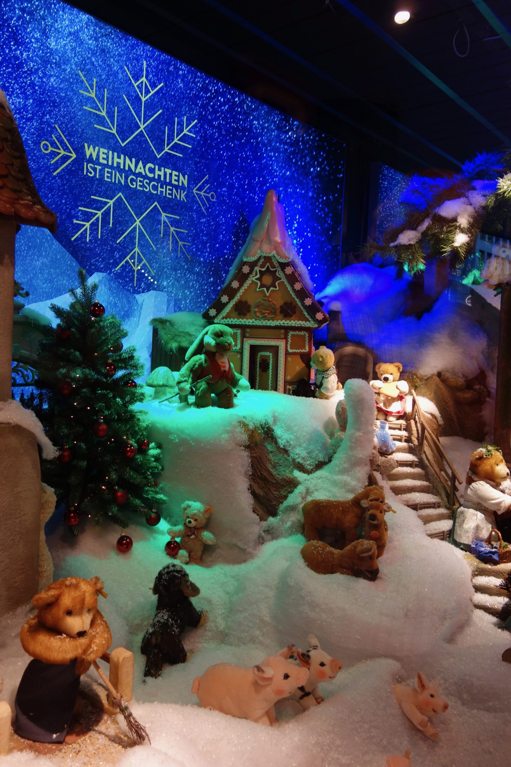 Inside the Galeria Kaufhof, there was a huge Christmas-themed Lego sculpture. Once outside, we were able to see the vast Christmas window display in action.