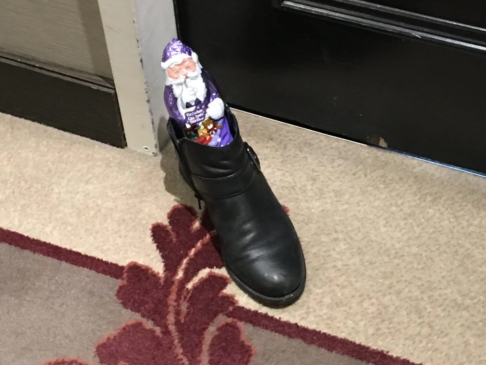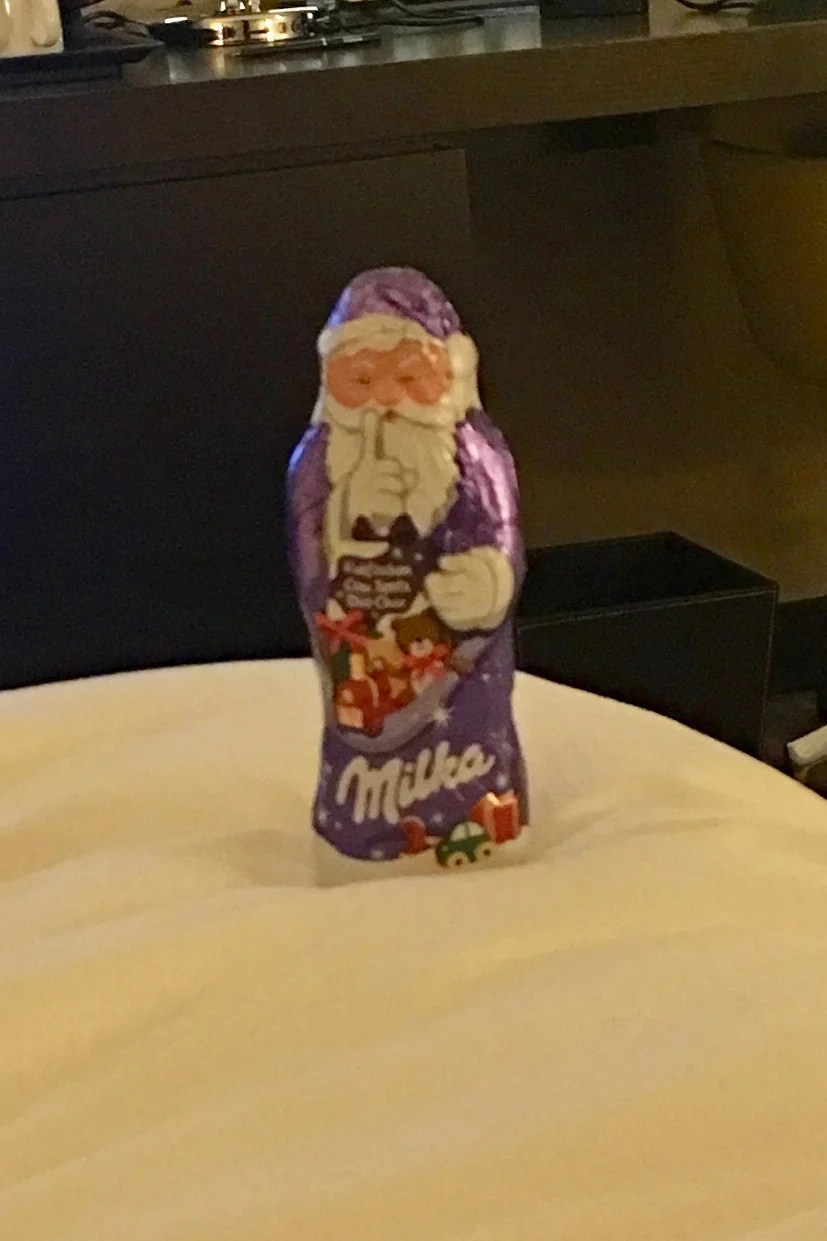 Thursday, December 6th – We had a foil wrapped chocolate Santa at waiting for us outside our door! A large Santa, but he IS chocolate, so he might not last too long.