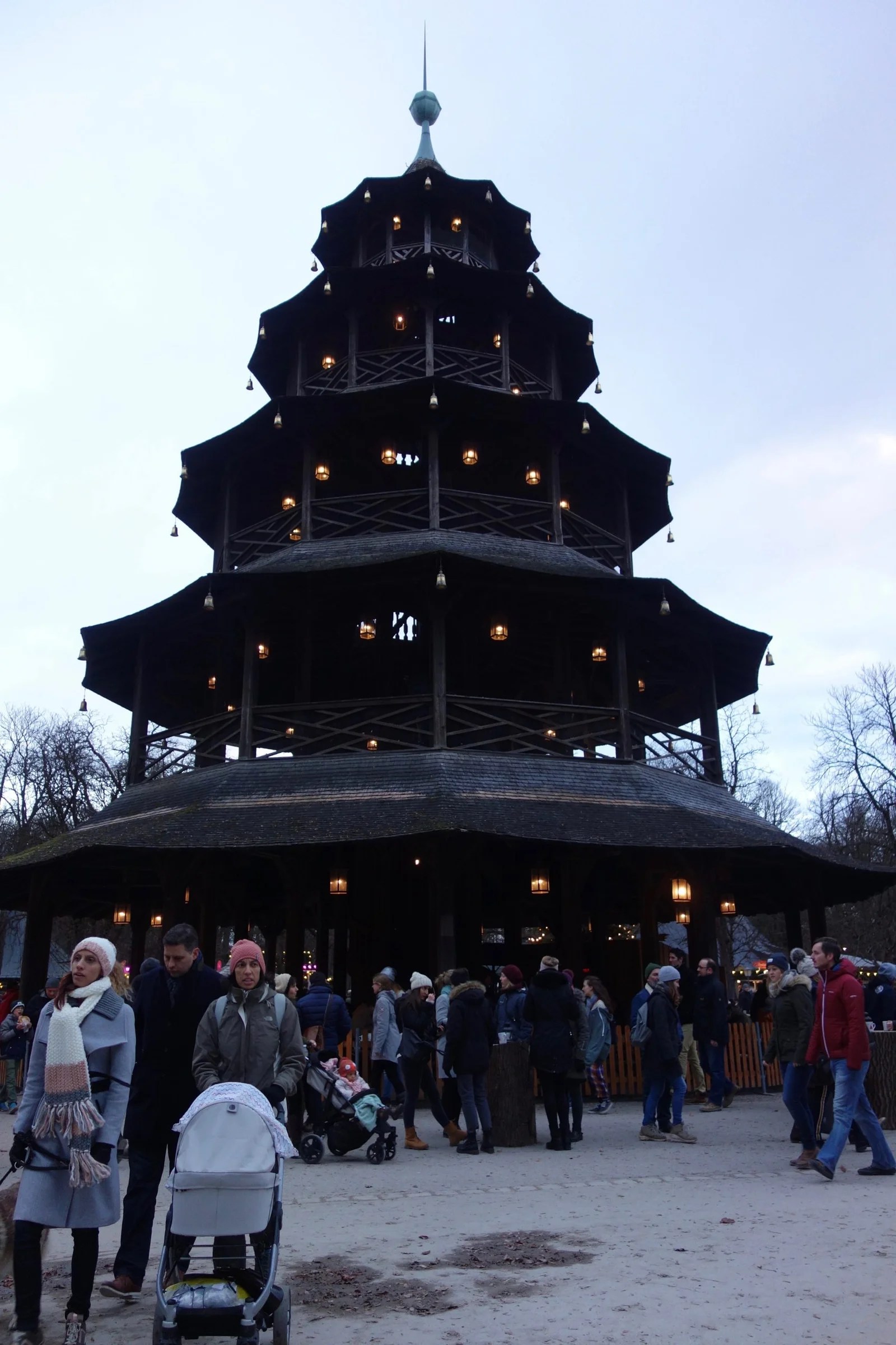 We walked to the Chinese Tower in the Englisher Garten. Our first Christmas Market of the trip! We procured a steamy glühwein and watched a curling competition on the temporary ice surface set up right there in the market. It was pretty entertaining and I think the participants knew it.