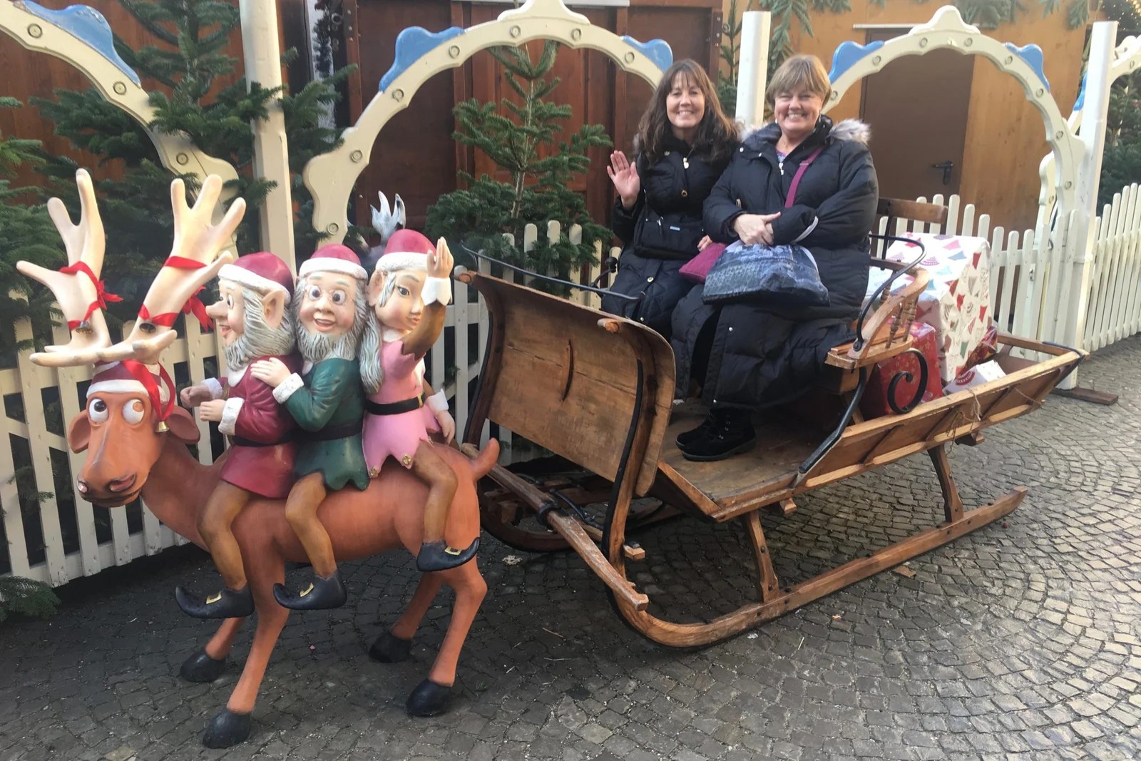 The Munich Residence Christmas Market was just off the square. That’s where a policeman took our picture. No, we weren’t in trouble, he just saw Jan taking a photo of me in a sled thought she should join me. His partner was giving him tips on how to do it. Quite entertaining.