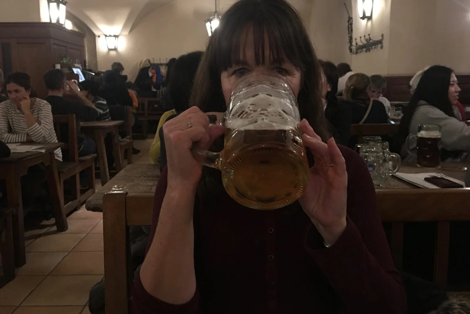 So much to see, but time won’t stand still for us. The group was disappointed that we only made a very quick “PPStop” and peek in the Hofbrauhaus. Jan and I were glad we spent a leisurely evening there having a meal and enjoying the atmosphere.