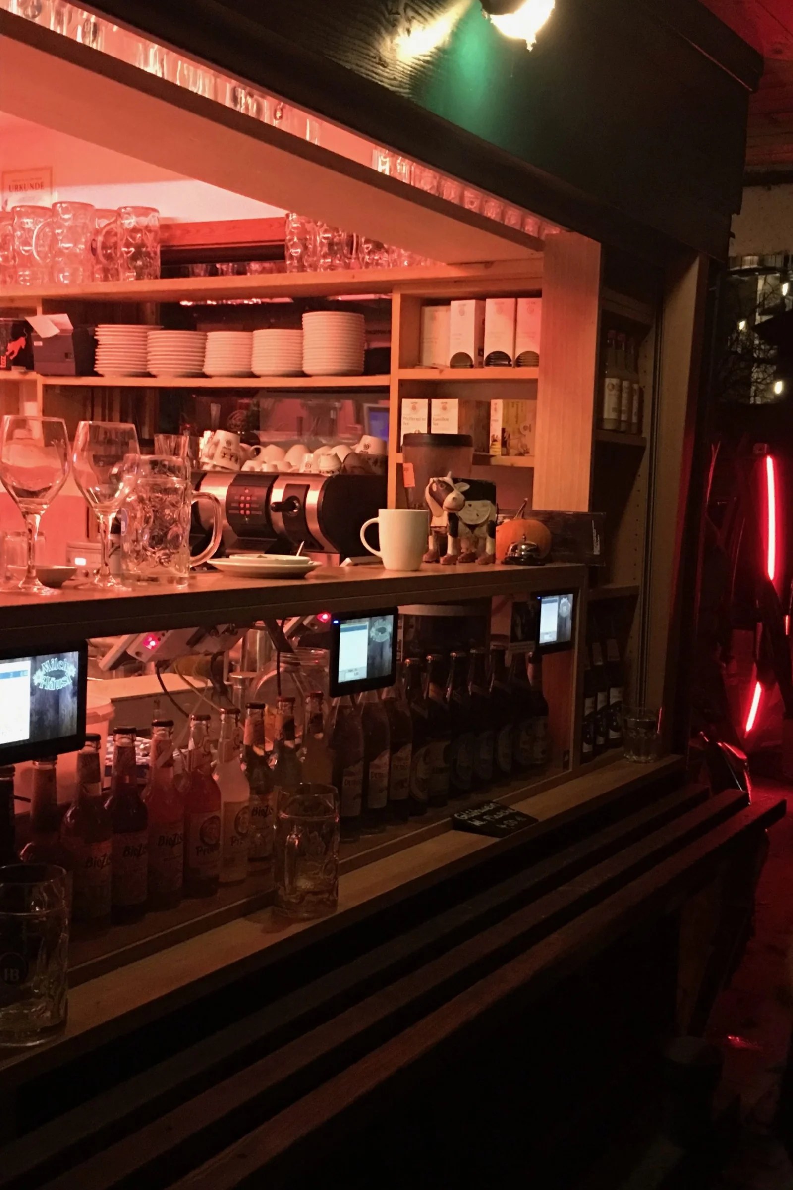 After having a cherry glühwein that came in a tall cup, we had to also have a cup of coffee in a small cafe, to get out of the cold for a moment and ….. you know, freshen up.