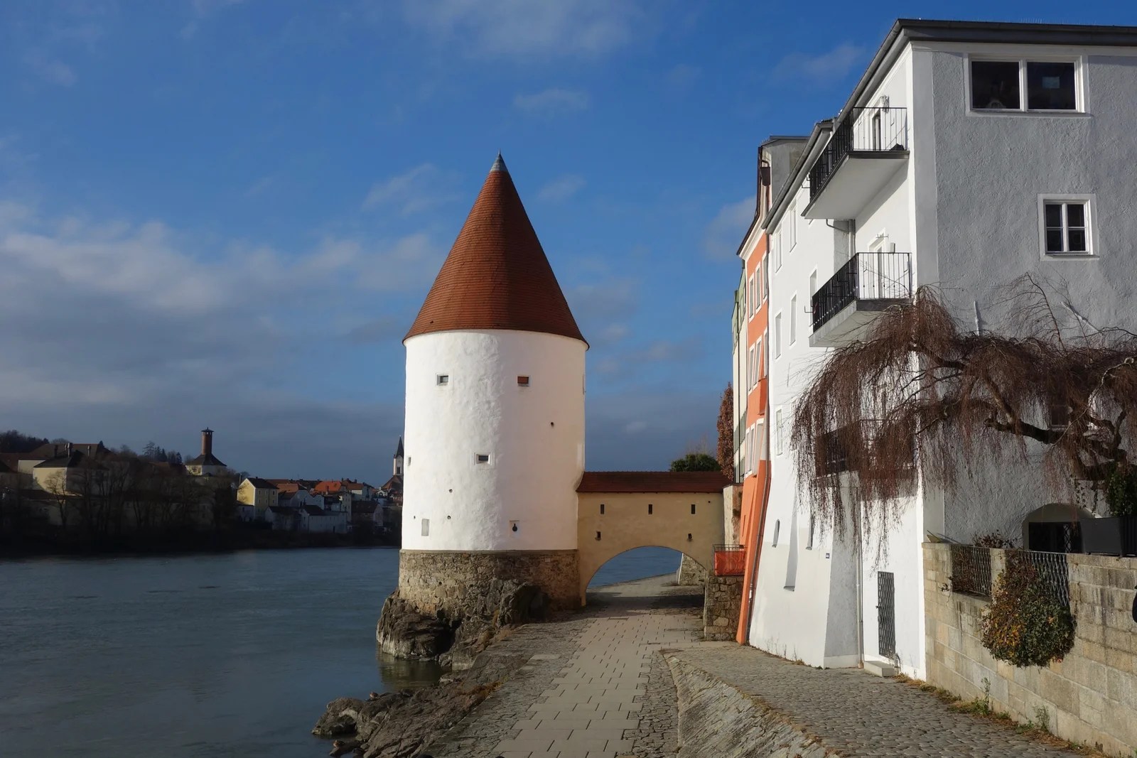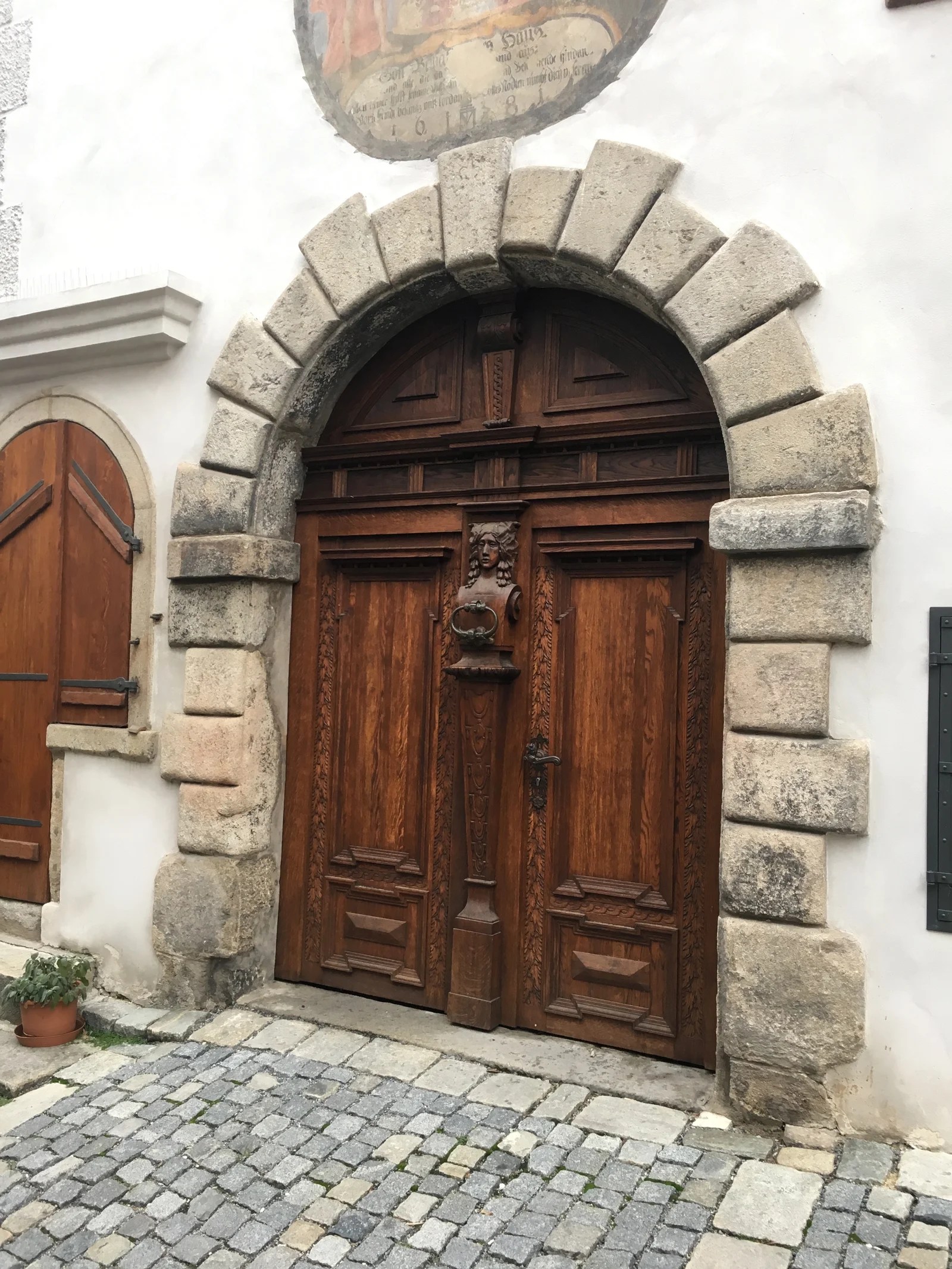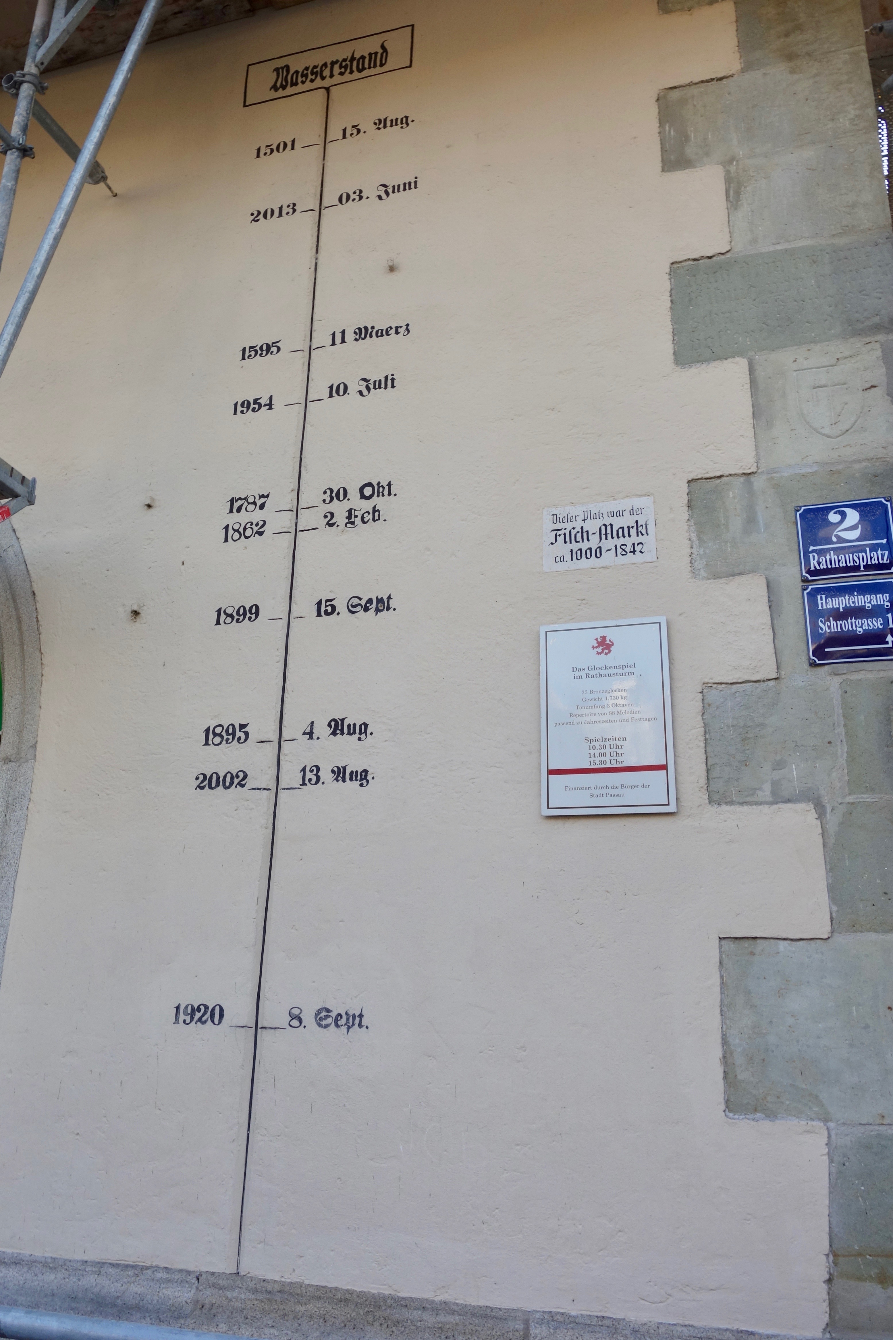 Our guide quizzed us as to the numerals on the side of the Veste Oberhaus across the Danube. (The second number is half of an 8 so 1499 – Hmm) Today the fortress has an outdoor theater and houses a museum, youth hostel and restaurant. I wouldn’t want to stay in one of the rooms with a fake window – painted due to the window tax back then.