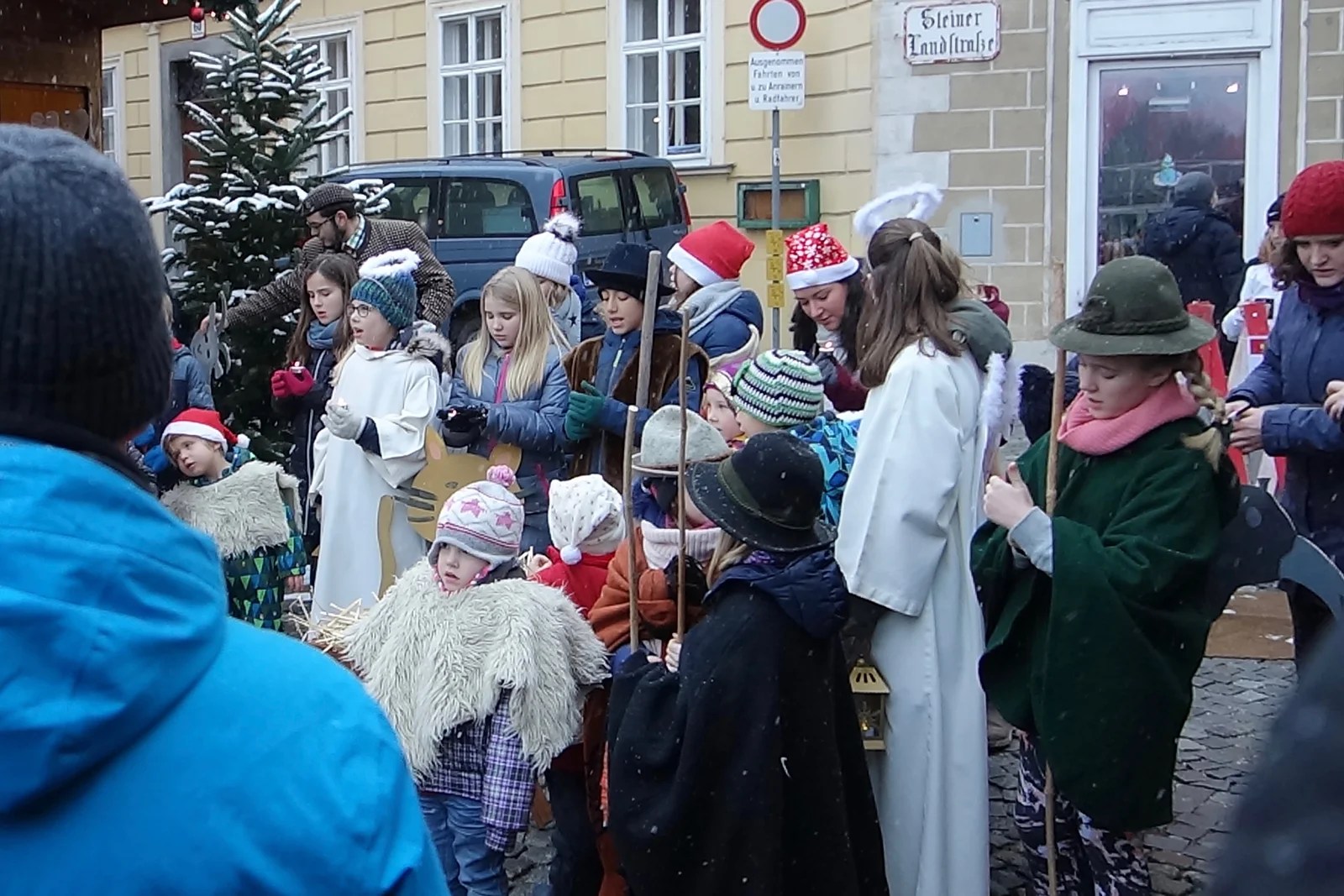 Back in Krems, Jan and I popped across the street to a little Christmas Market we spied as we got off the bus. Some school children were putting on a little Christmas play. It was so fun to watch!
