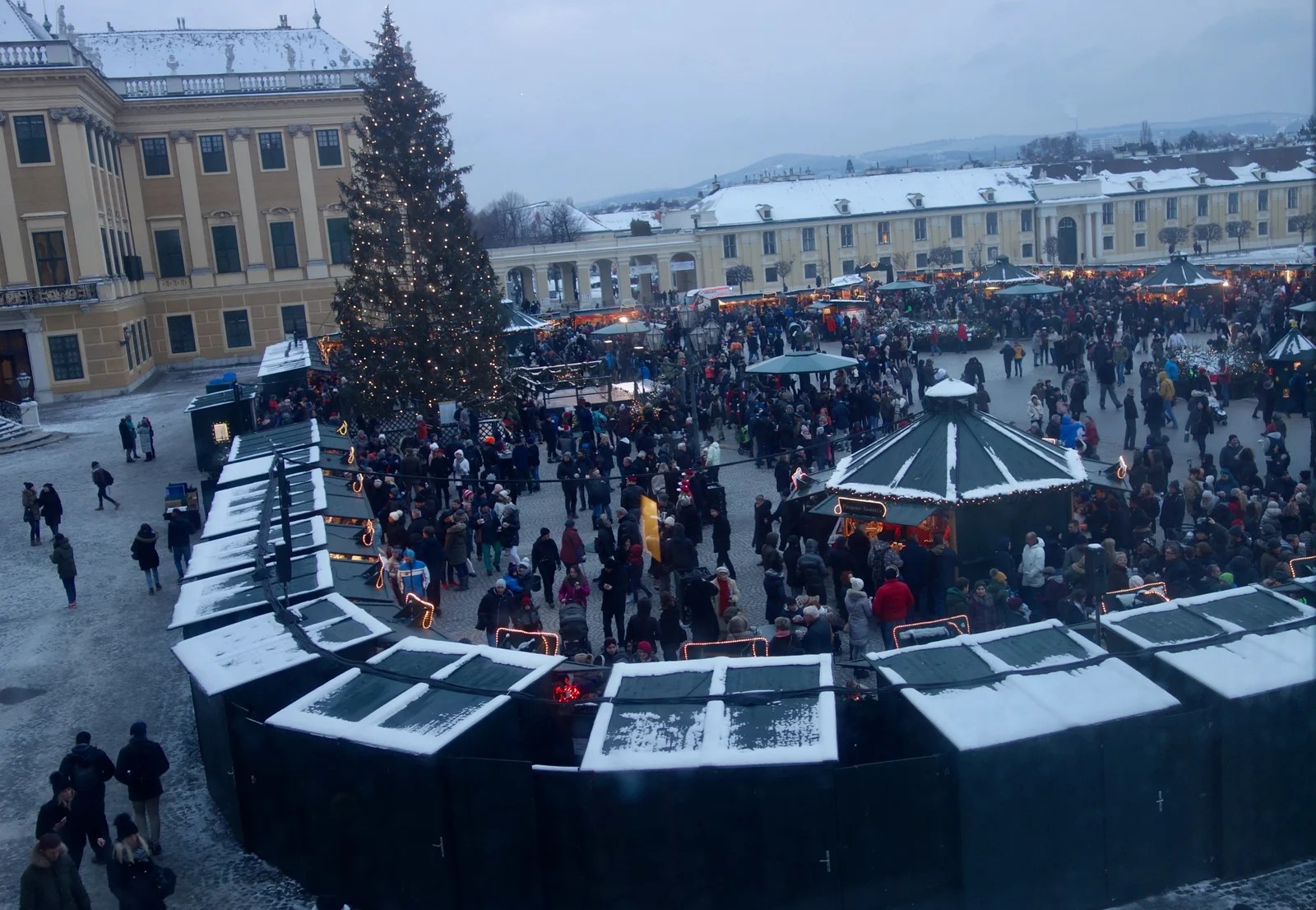 The afternoon was spent on an optional tour to Schönbrunn Palace, a UNESCO site. Our guide was Weiter and our driver Herhardt. (My last attempt at getting to the Christmas Market at the palace was foiled by high winds that shut down the market just as we were being dropped off by an expensive taxi.) The drive took us through the city where we could further admire the variety of architecture.