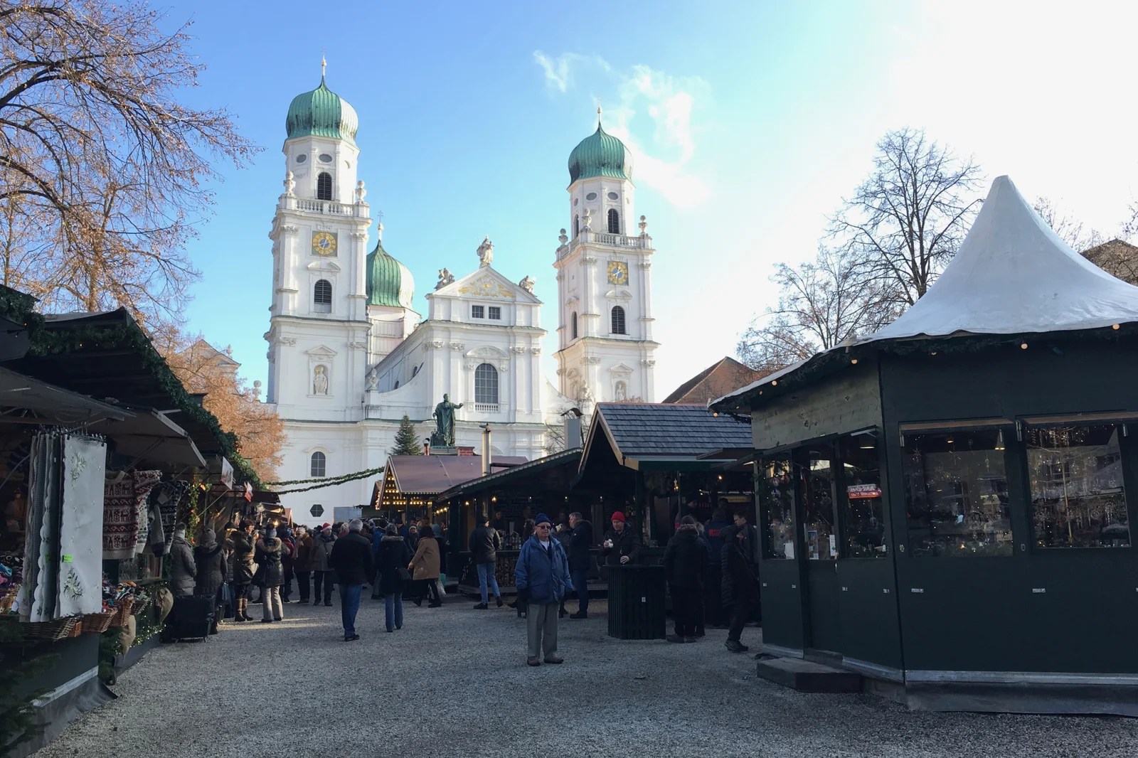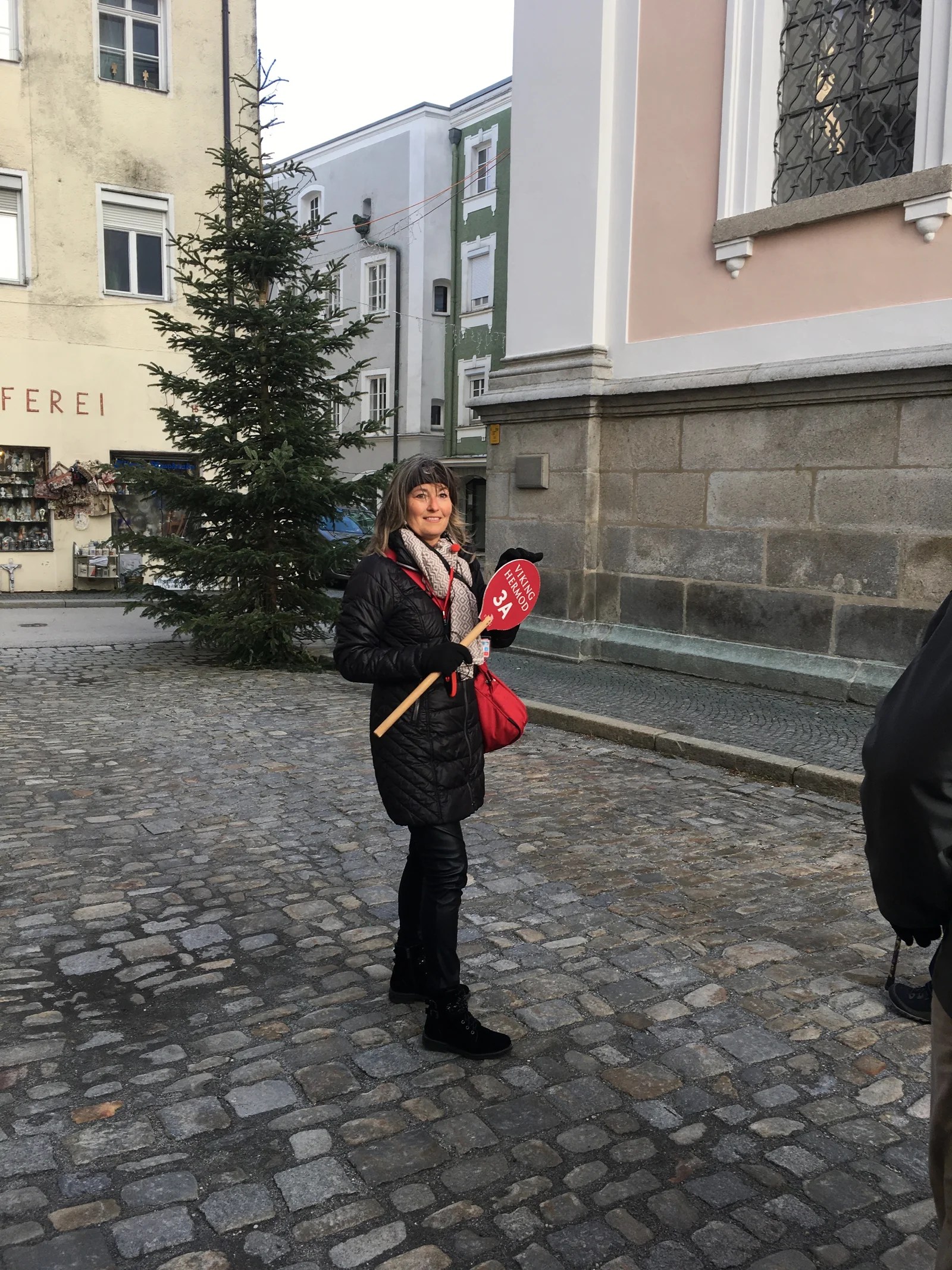 Mike and Ruth were out and about making their own discoveries, so Jan and I joined the welcome walk. Passau is such a pretty little town at the convergence of three rivers: the Danube, Inn and Ilz. The narrow streets led up to the main square. The Ve was docked within walking distance of the Christmas Market. Actually Passau proved to be a very walkable town. There was a lot to see in a compact area.