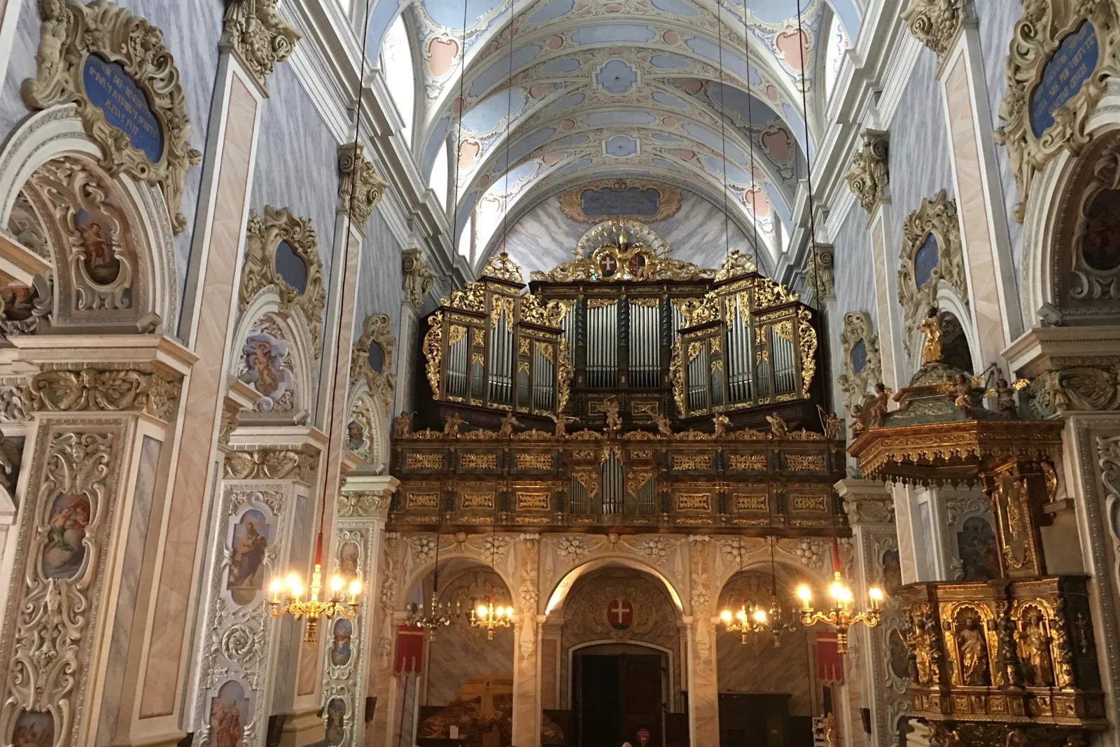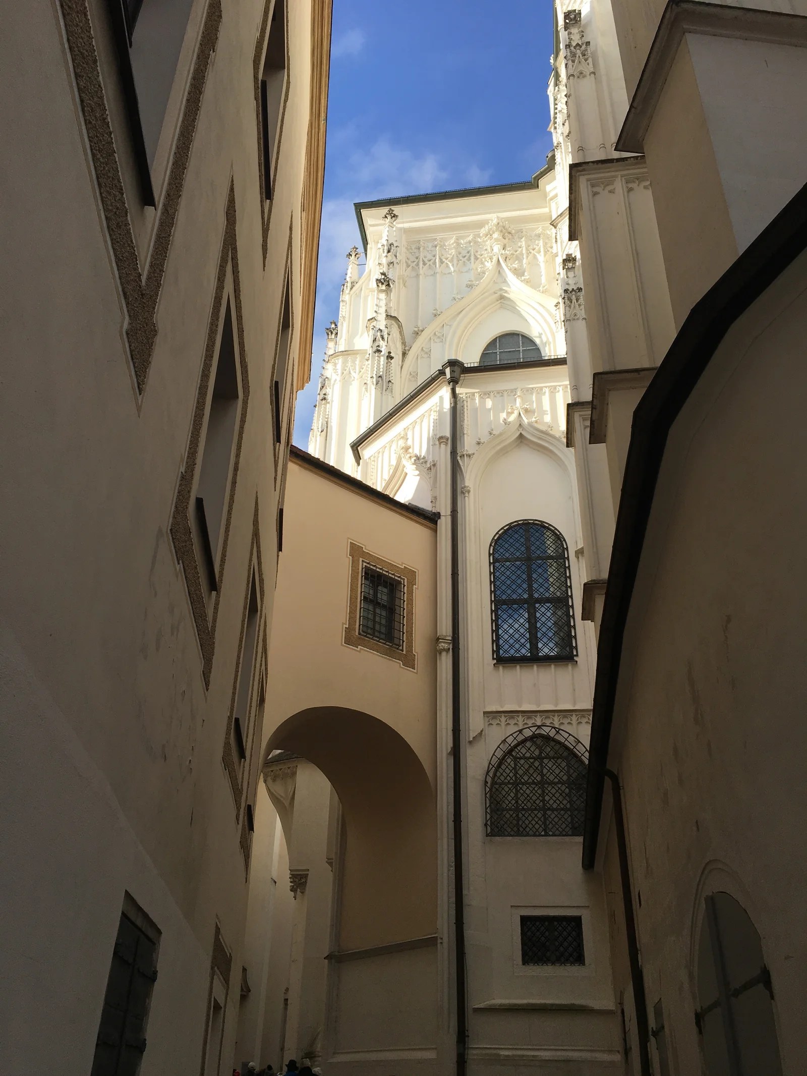 We ventured just a short way before stopping to admire the majestic St Stephen’s Cathedral from the exterior. Then we stepped inside its baroque interior which included a huge pipe organ – Europe’s largest (the world’s second largest). It consists of 17,974 pipes, 233 stops and four carillons. We did not have a chance to listen to an organ concert this time (I had on previous visits), so we wandered about soaking in the opulent interior. The angels in the paintings on the upper domes had plaster legs that dangled over the edge.