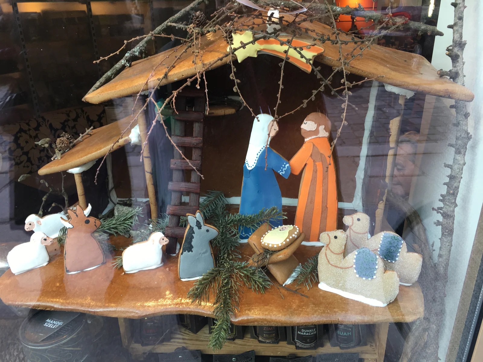 The Christmas Market was small but pretty. After perusing the stalls, we popped into a few little shops along the narrow street nearby. The toy shop with scary puppets in the basement was quite entertaining. I found an espresso cup and the others all found a little something from painted eggs to wooden toys.