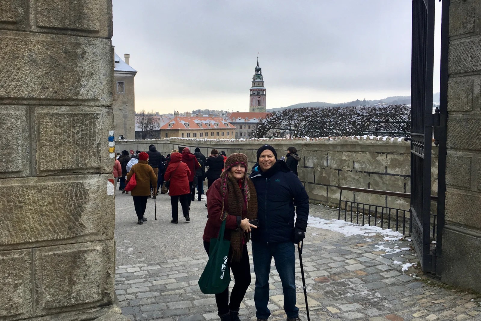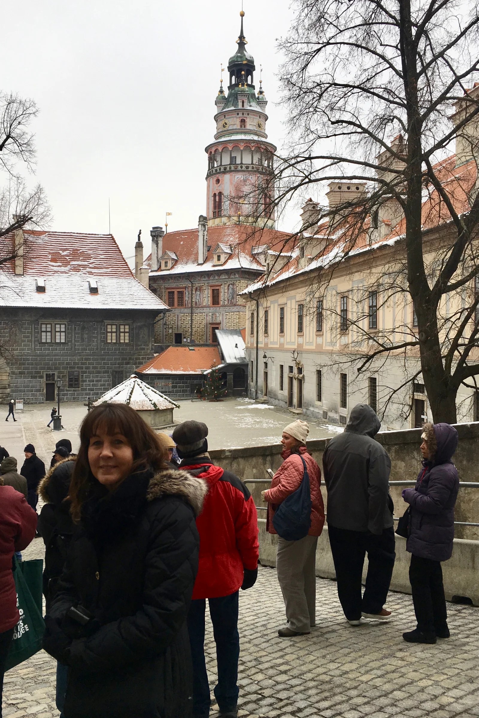 Friday, December 14th – The ship docked in Linz, Austria but we were off on another adventure. We joined an included tour to Česky Krumlov, in the Czech Republic with our local guide Stepan and coach driver Peter. The drive through the countryside was very scenic and eventually we spied the town’s castle up high on a slope.