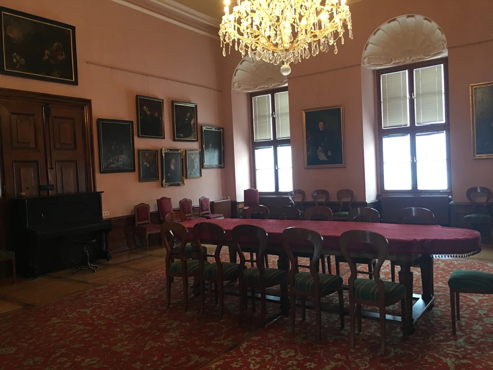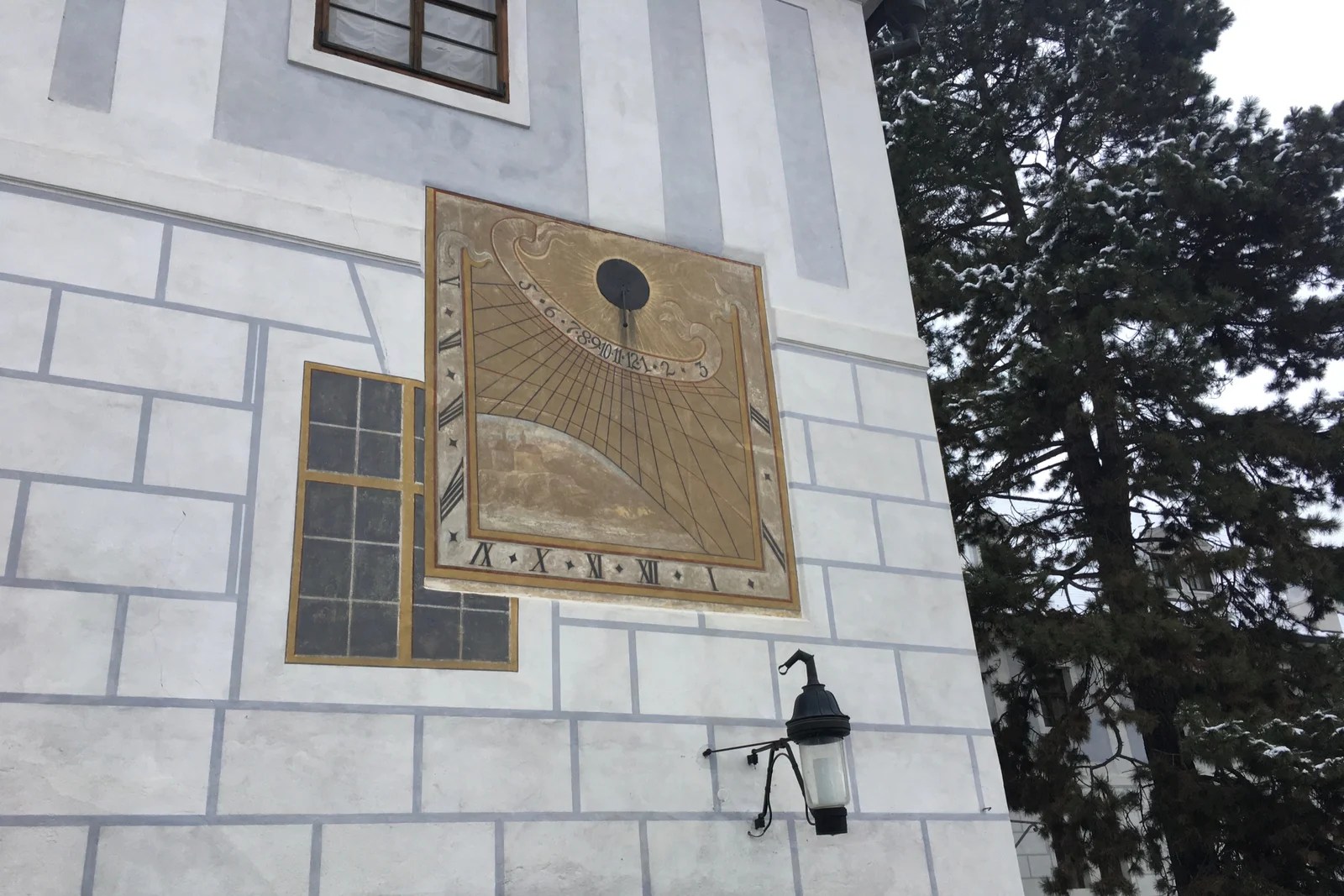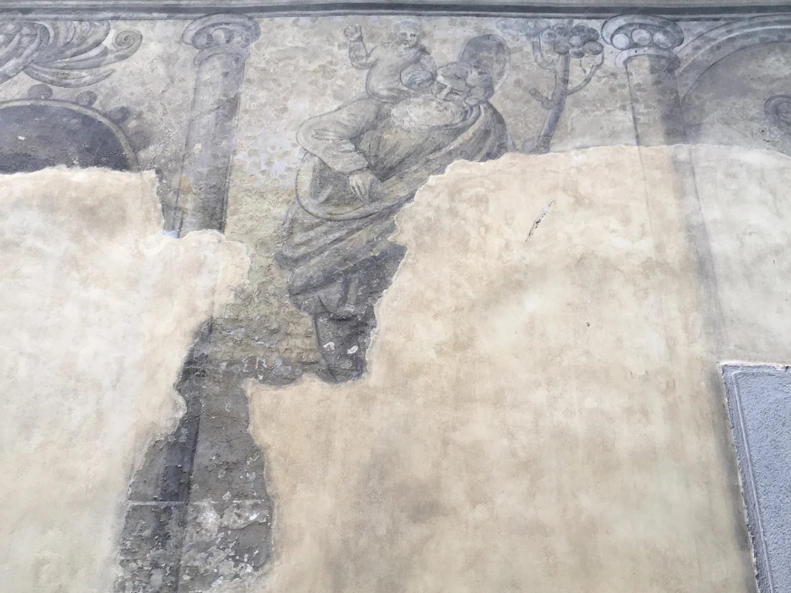 We then left the castle and were taken to the old town center to see some ancient murals and the town hall. Many of the buildings in that area were also painted with faux bricks and stone like the castle.