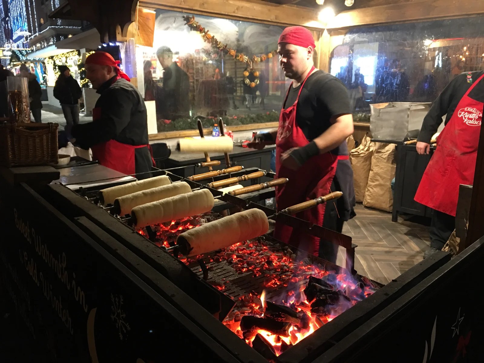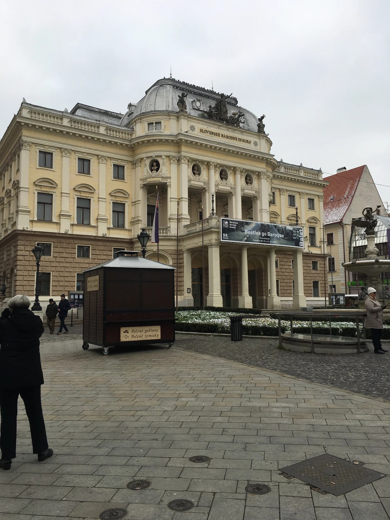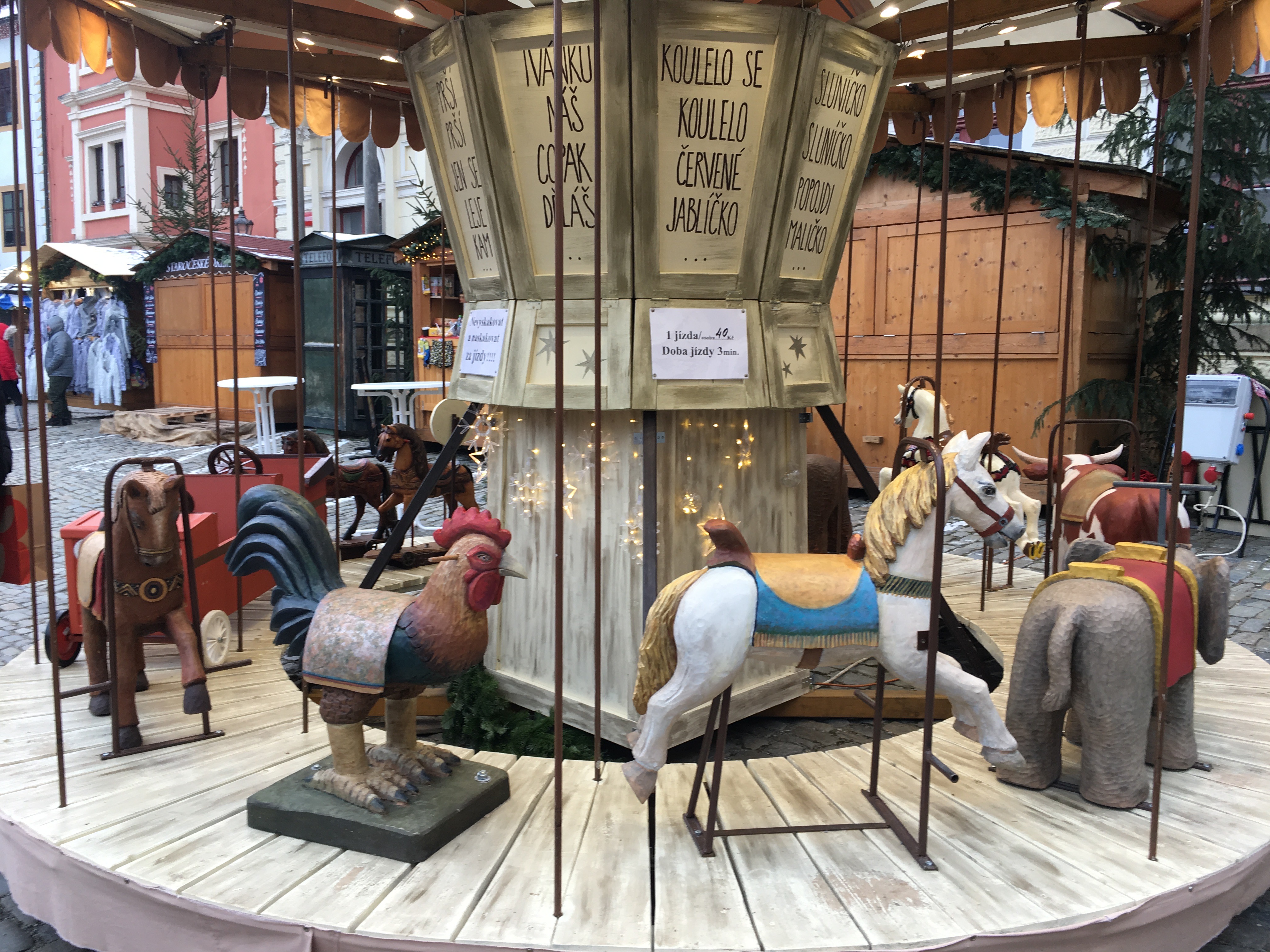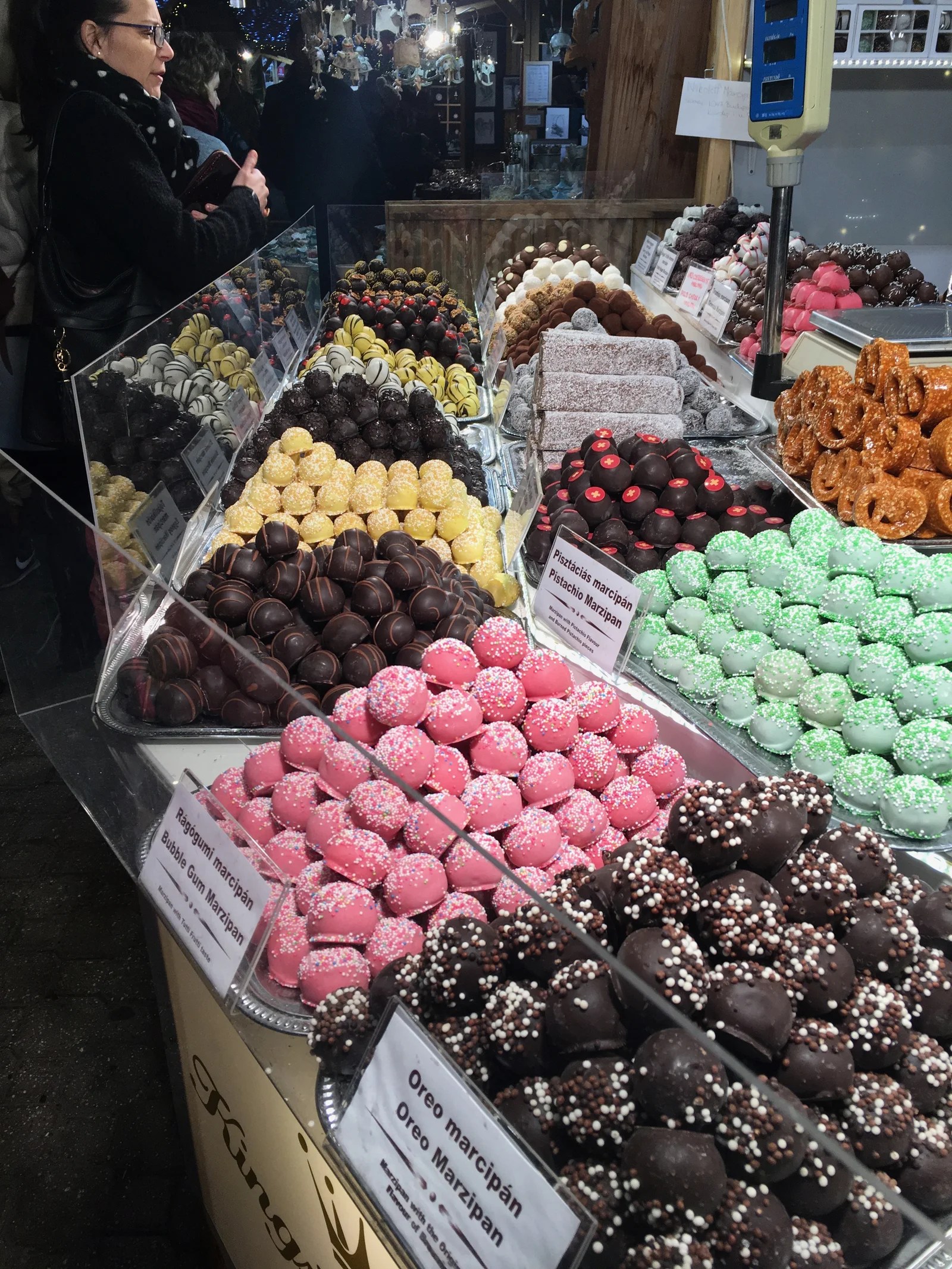 At the Christmas Market, we tried a burrito like food and a Slovakian “Black Bear” black currant mulled wine. The food was strange (glad we shared) but the hot beverage was tasty. I wish we could have sampled the honey mead. I bought a cute ceramic bell ornament, a bottle opener and some chocolate.