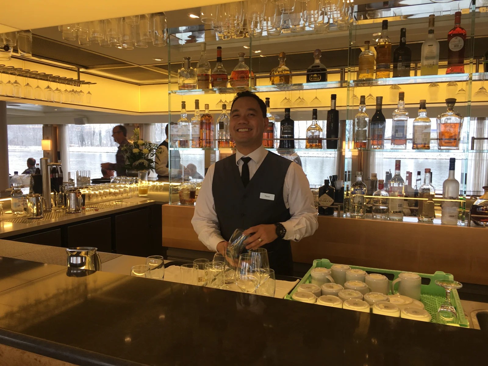 Jan and I got all checked in for the river cruise portion of our journey. Our stateroom, number 232, was on the same level as the restaurant but quite a trek down the hall. We opted for a french balcony this time. It had a floor to ceiling sliding glass door that opened up but was not quite as roomy as the veranda stateroom we chose last time. Not that it mattered, we didn’t intend spending much time in there. Our steward was Razvan from Romania. He welcomed us with a friendly smile. Viking staff take such good care of their guests and he was no exception.