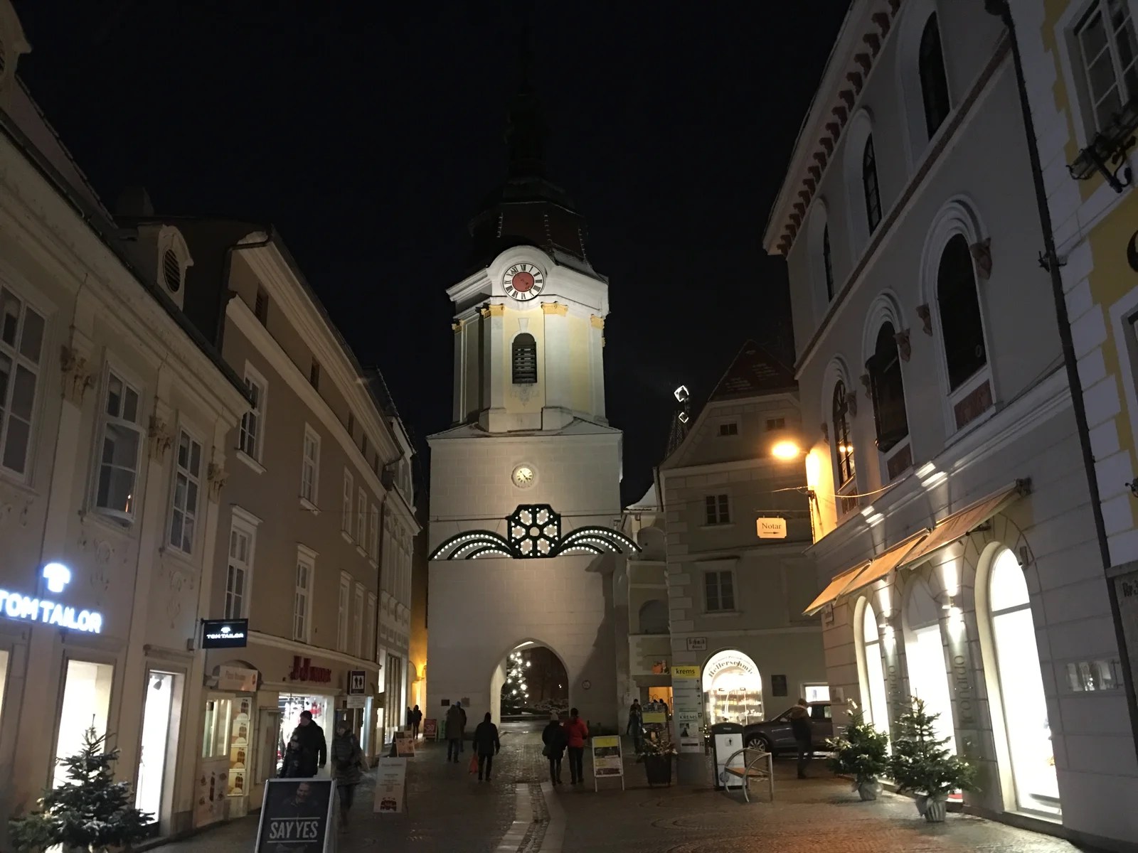 Our time in the Czech Republic was over and by the time we returned to Linz it was getting dark. We headed to the Christmas Market in the the city’s main square, called the Hauptplatz. Austria’s largest church, the New Cathedral, also known as the Cathedral of the Immaculate Conception, was located in this old quarter as well. Live music made the market all that more festive. I had to keep my glühwein mug and buy a little Santa figurine to go with it.