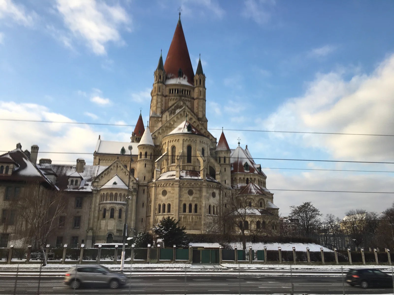 The morning was spent on a Panoramic Ringstrasse Tour with our local guide Gabriella and our talented driver Vlado. Part of the tour was by motor coach and we drove past some amazing architecture, including the St. Nicholas Russian Orthodox Church near the Danube. The coach continued past the Tegetthoff spire with its snowcapped horses and we saw the ferris wheel from the “The Third Man” and other movies. The coach then crossed the Danube canal past the Urania Observatory and continued into the city.