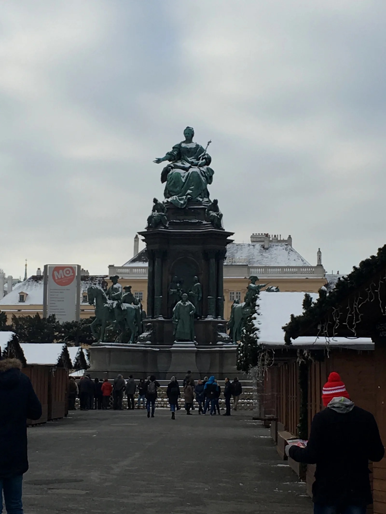 The coach pulled to a stop and we were able to walk about the Maria-Theresien-Platz and Memorial. Oooh – another Christmas Market! It was not yet open for the day and I couldn’t wait to go back and see it in the evening.