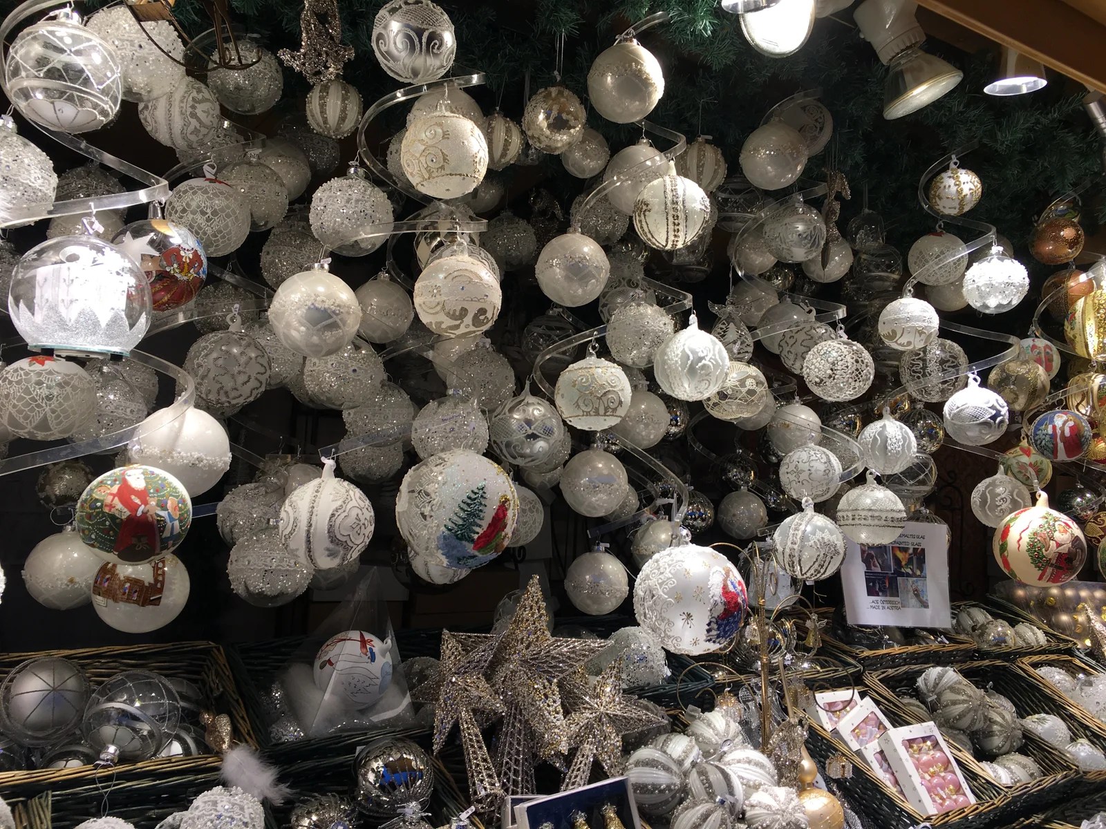 Another Christmas Market stood between the ruins and the Palace. All of the stalls were white with each front sign depicting the palace on it. We perused the offerings from ornaments to jewelry.