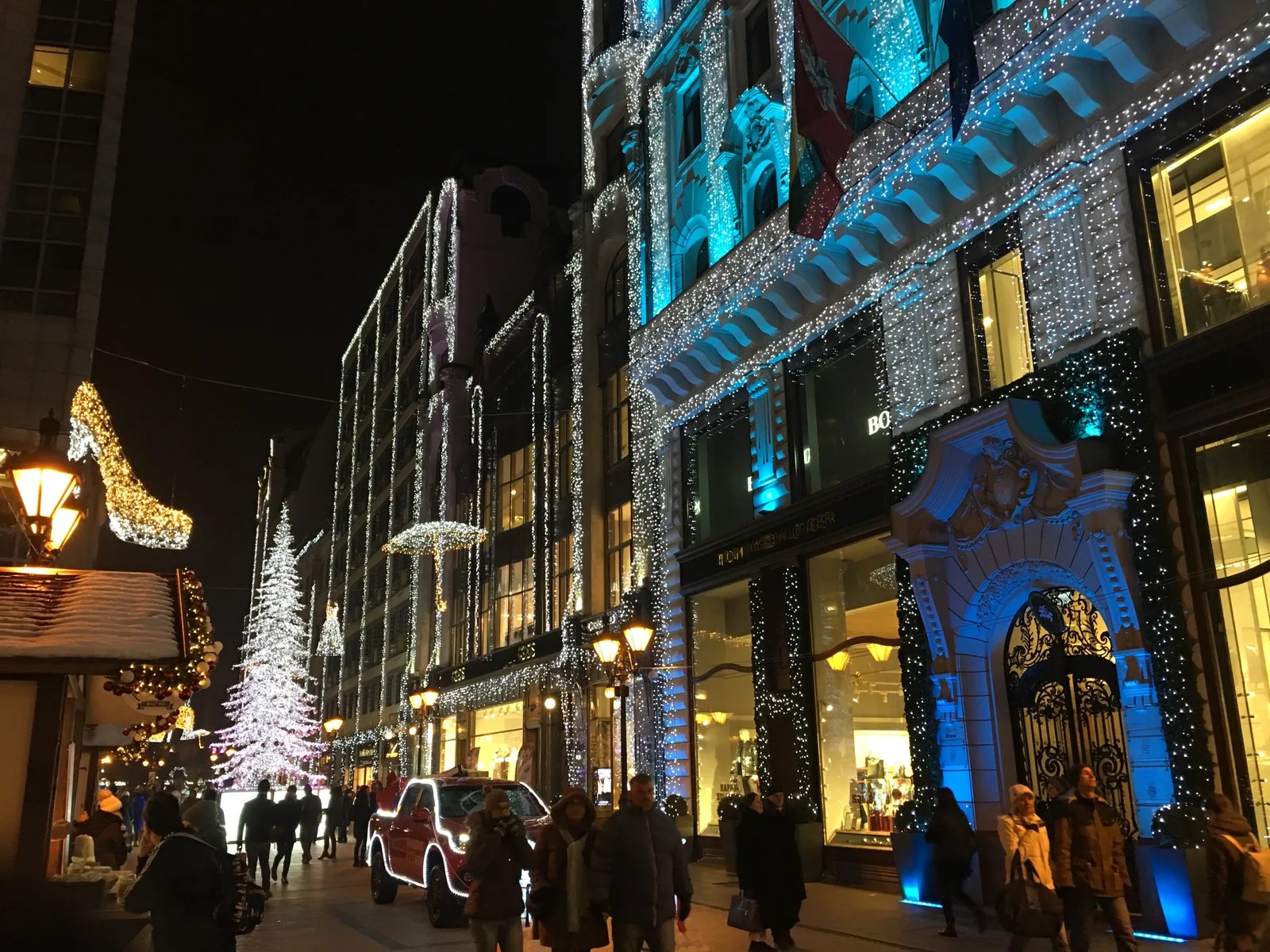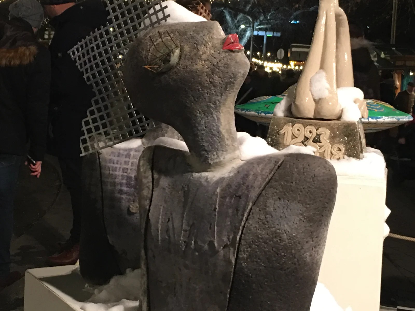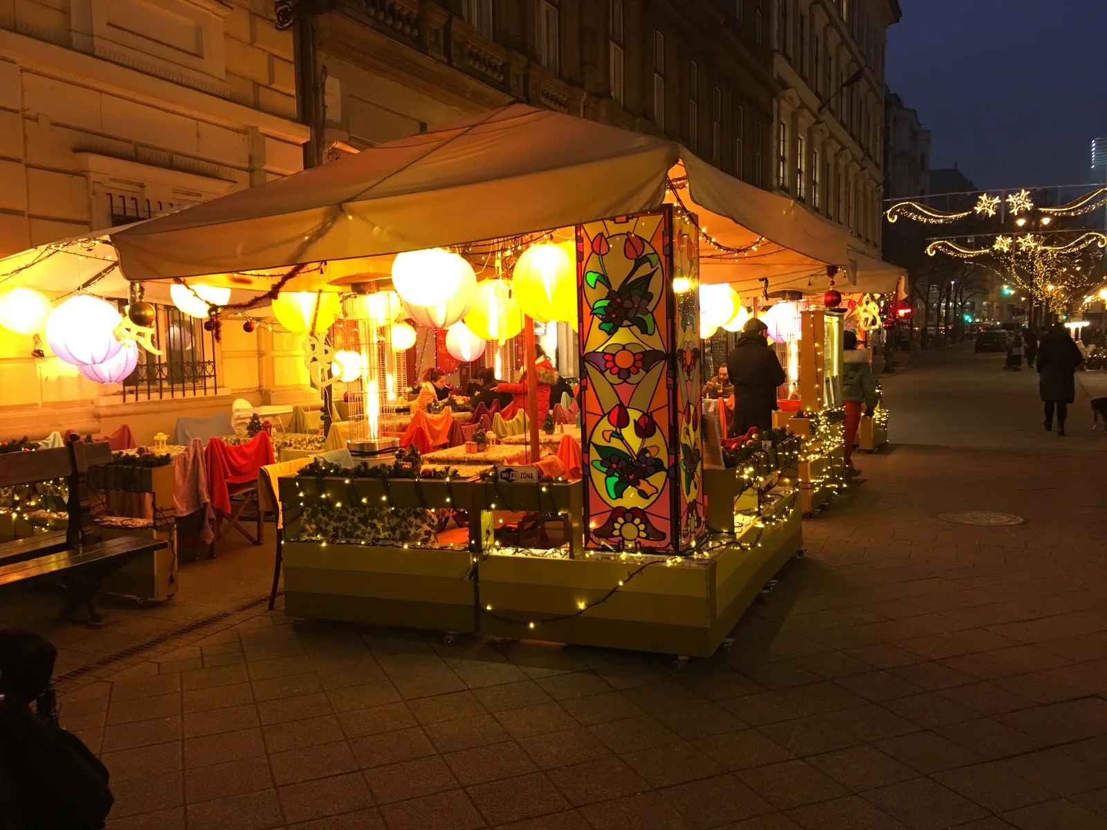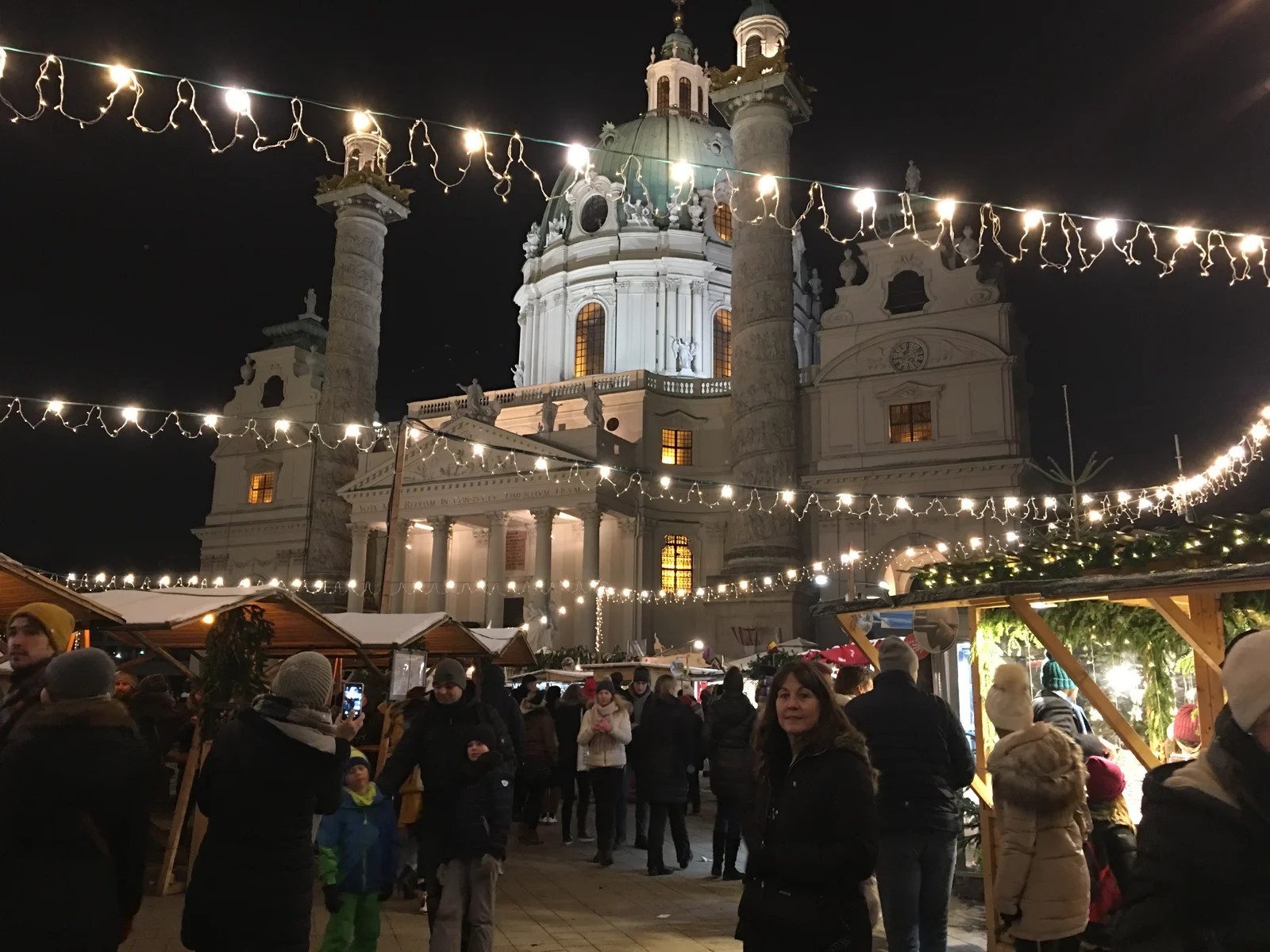 Maria-Theresaplatz was our next stop and it was prettier in all lit up in the dark. More little boot mugs and friendly people.