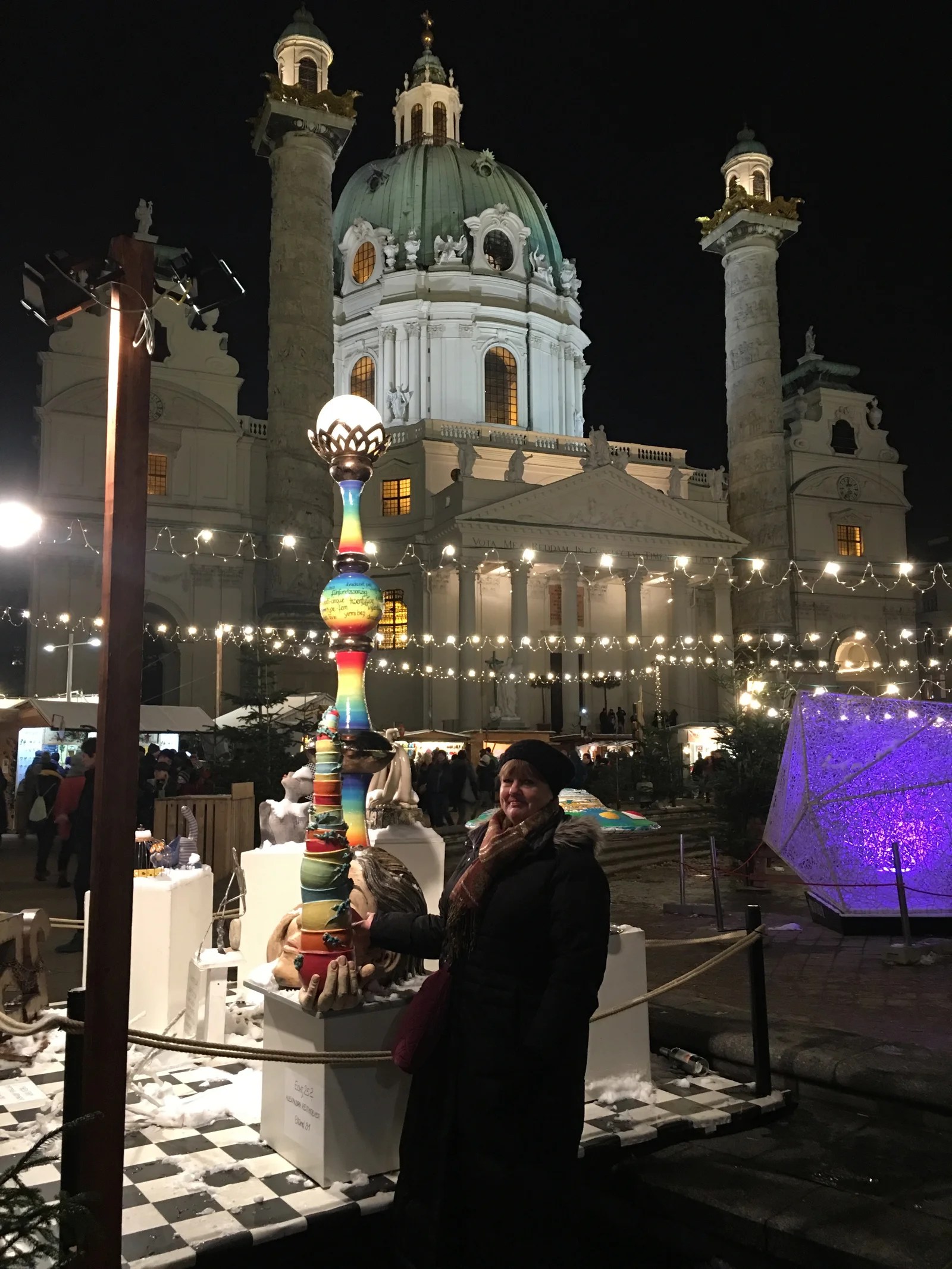 Christmas Markets are located throughout the city. First we went to Karlskirche. In Resselpark, we discovered an art show with some unique creations. We even enjoyed melodic violin tunes played by a gentleman as we left the area.