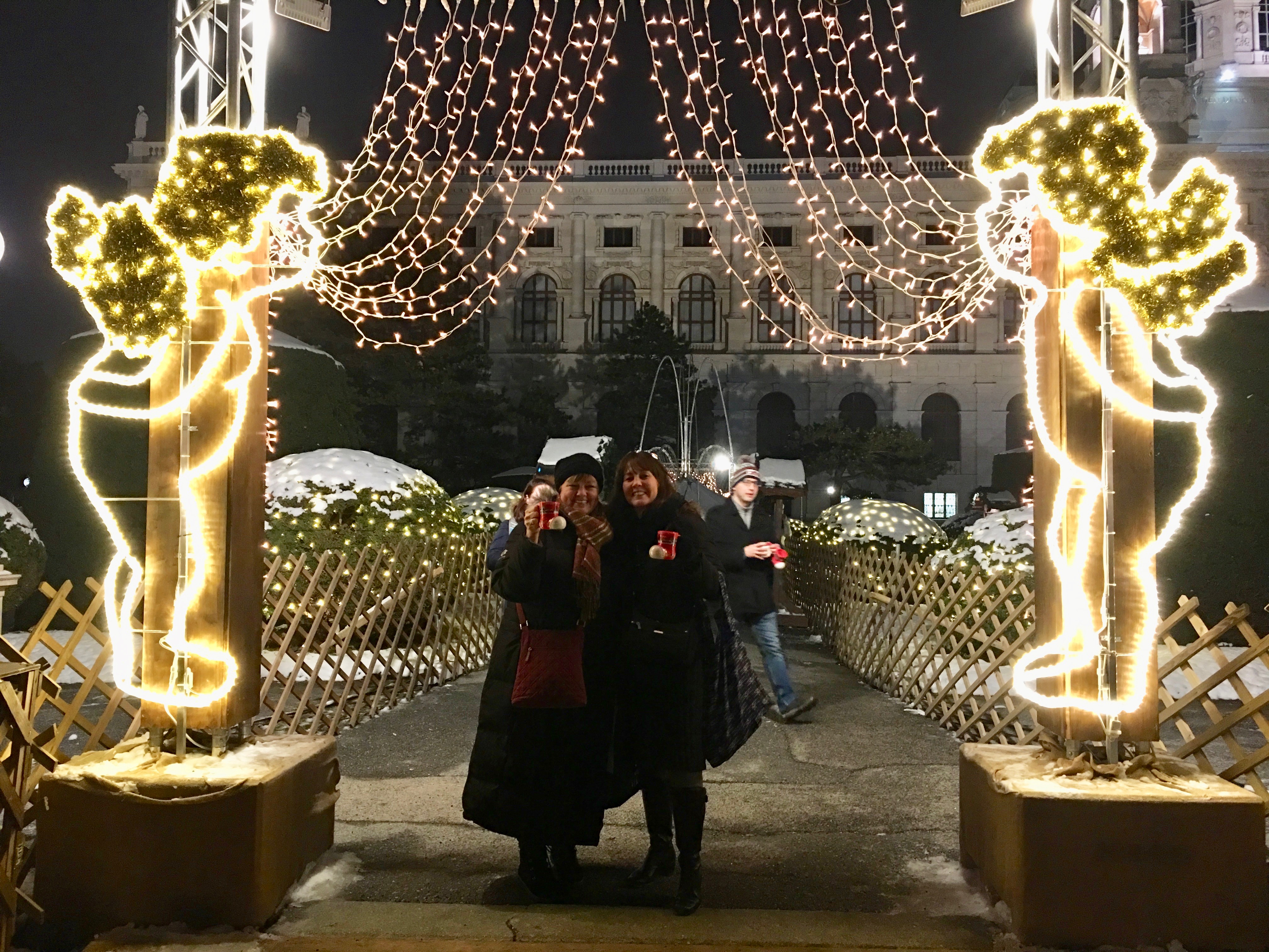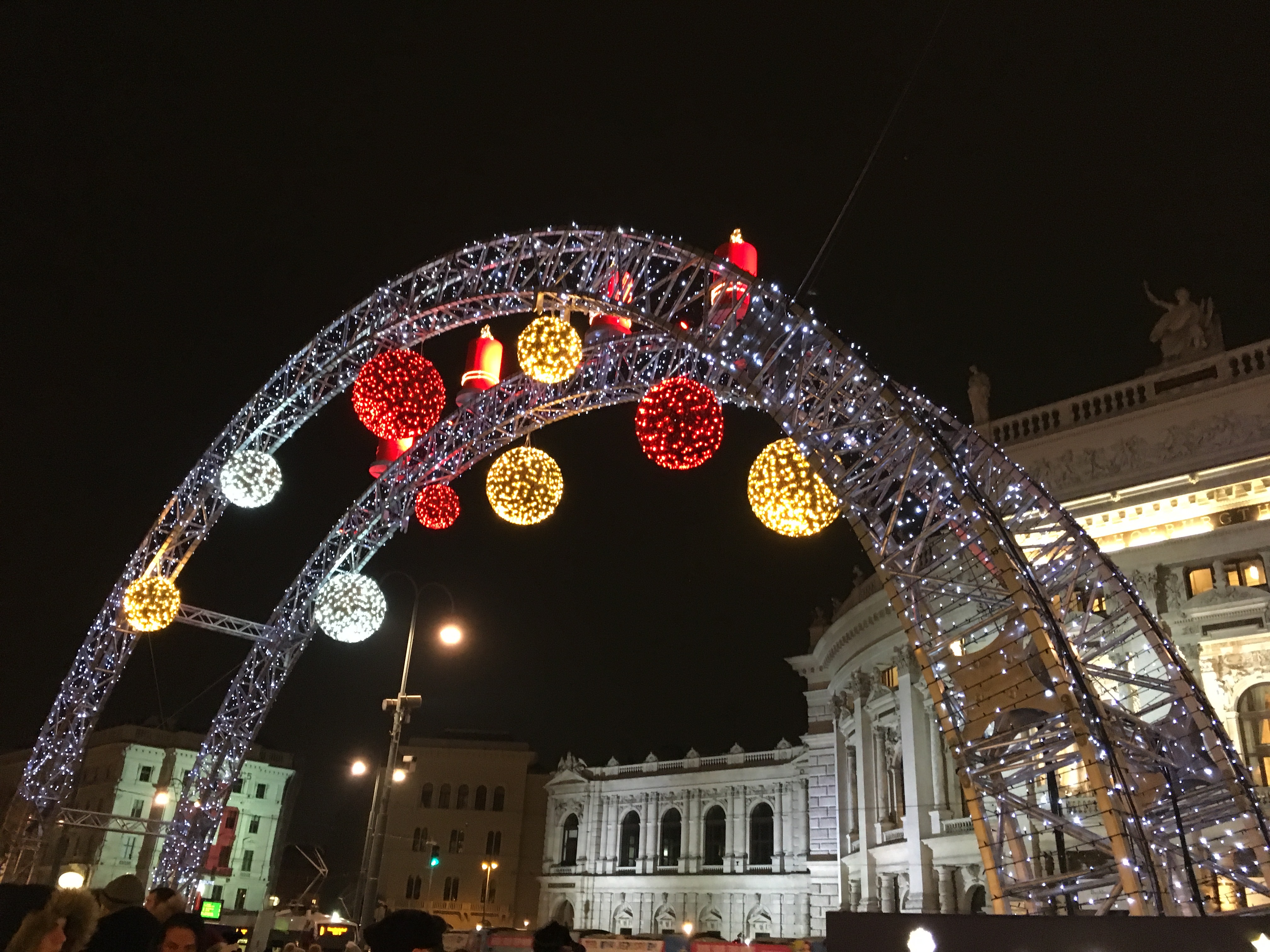Jan and I are having so much fun making our way from place to place. Vienna at night is so pretty all lit up in festive lights. The Volksgarten trees were covered in them. Rathausplatz was beautifully illuminated as well.