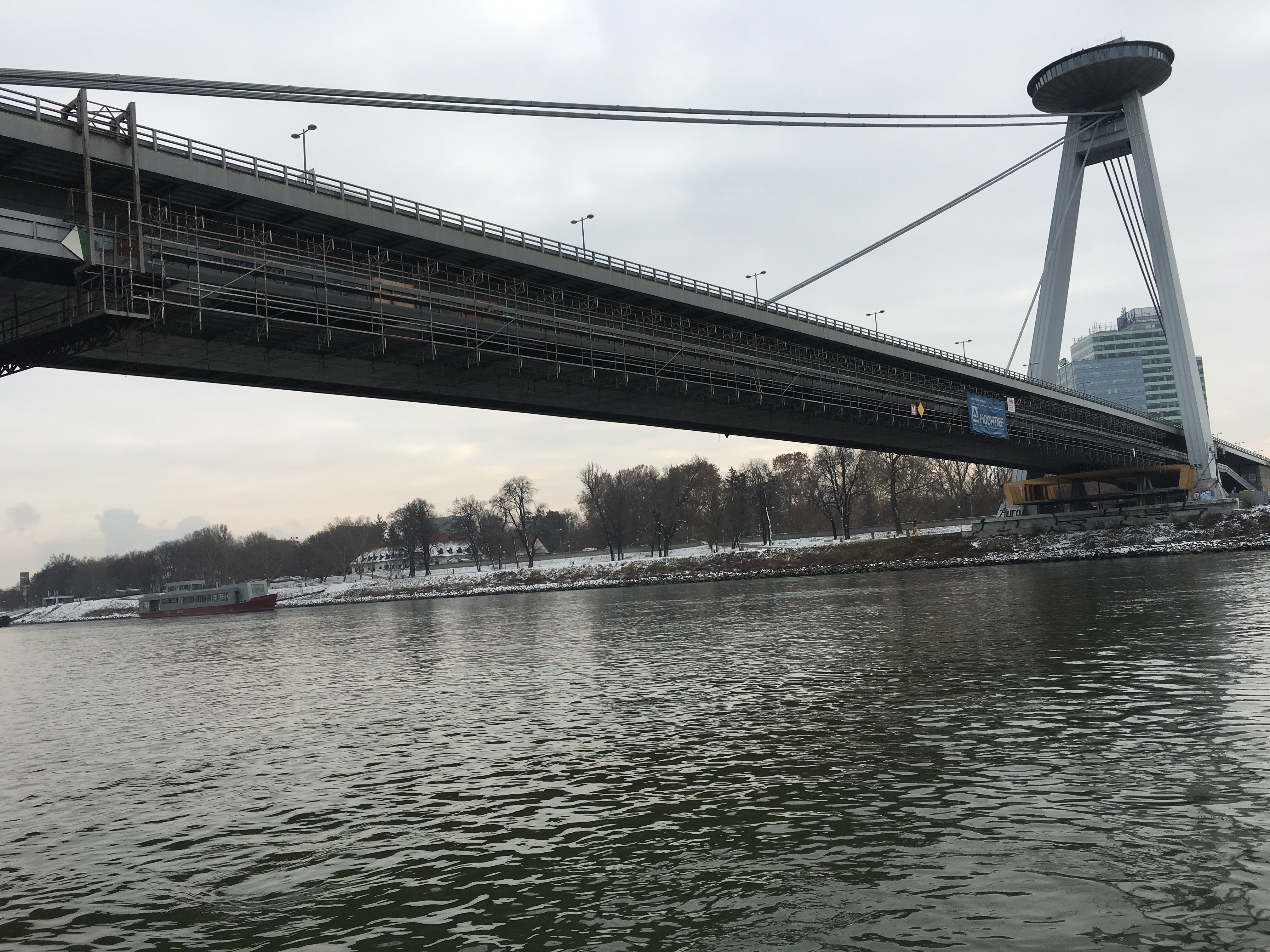 Monday, December 17th – Our ship arrived early to Bratislava, Slovakia’s capital, very near both Austria and Hungary. The Panoramic Tour with our local guide Uri consisted of both a coach tour and walking tour similar to yesterday. First we drove through the city and then up to where the U.S. Embassy was located. We could see the castle in the distance from there.