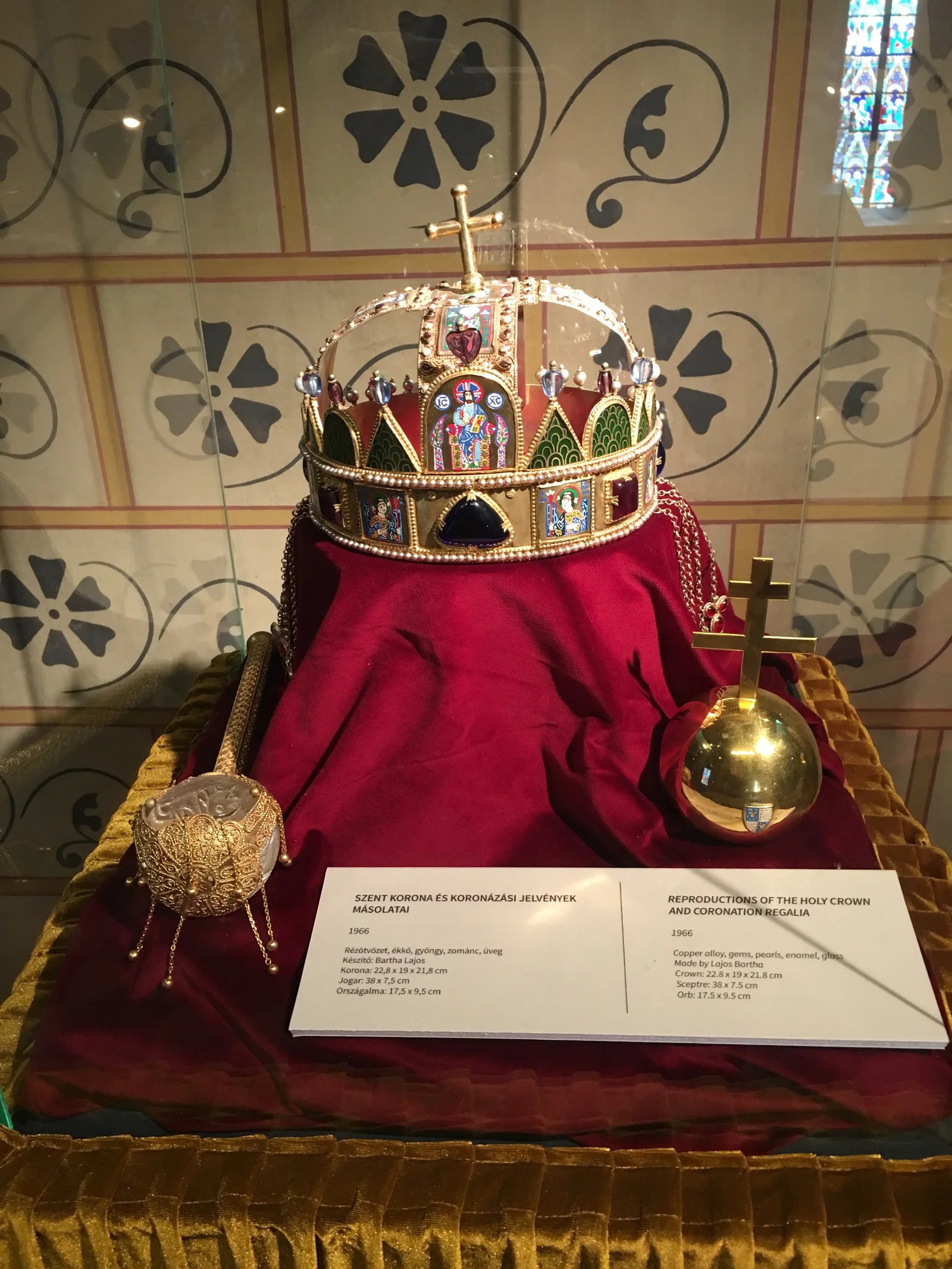 At the top of the hill was Matthias Church with its ornate Charles Crown copy and a Black Madonna copy. Jan and I saw the actual miraculous Black Madonna statue at Einsiedeln Abbey on a previous trip. Even the tile on the floor was the same as in the Swiss chapel. We saw Mike and Ruth with their excursion group that didn’t entail so much walking.
