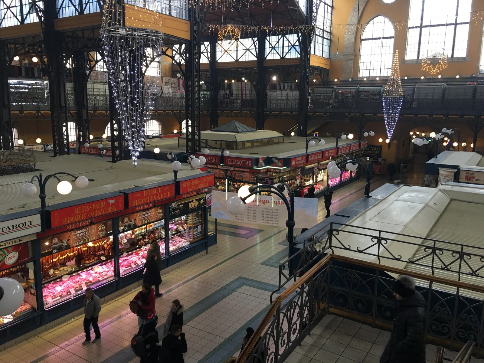 Soon, it was time to walk back to the Pest side over the Chain Bridge with its regal lions at each end. We visited a Christmas Market and then made our way down Vaci Utca, the shopping street. The Grand Market is just that – very grand! Multiple levels of Hungarian delights were offered. I bought paprika, both sweet and hot, something I will do every time I come here, as it can’t be beat.
