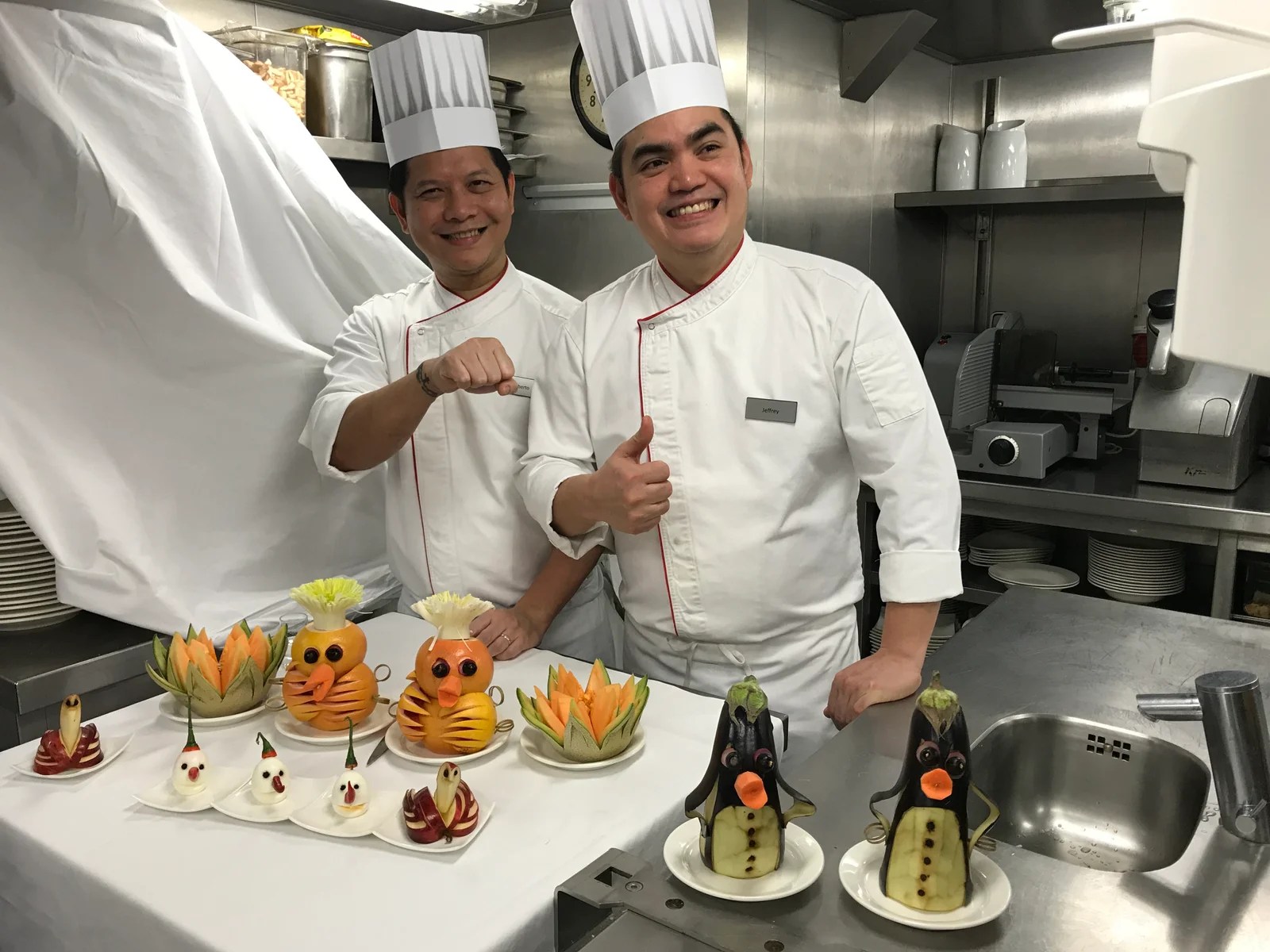Mike and Ruth were feted with a song and a special dessert for their 41st anniversary. After dinner, everyone was invited to a galley tour to see where our food was prepared each meal.