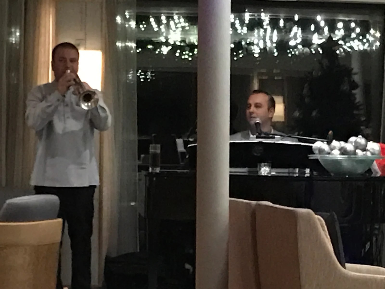Dinner was “A Taste of Austria” themed affair. Musicians greeted us at the bottom of the stairway. The crew dressed in their leiderhosen and dirndls.